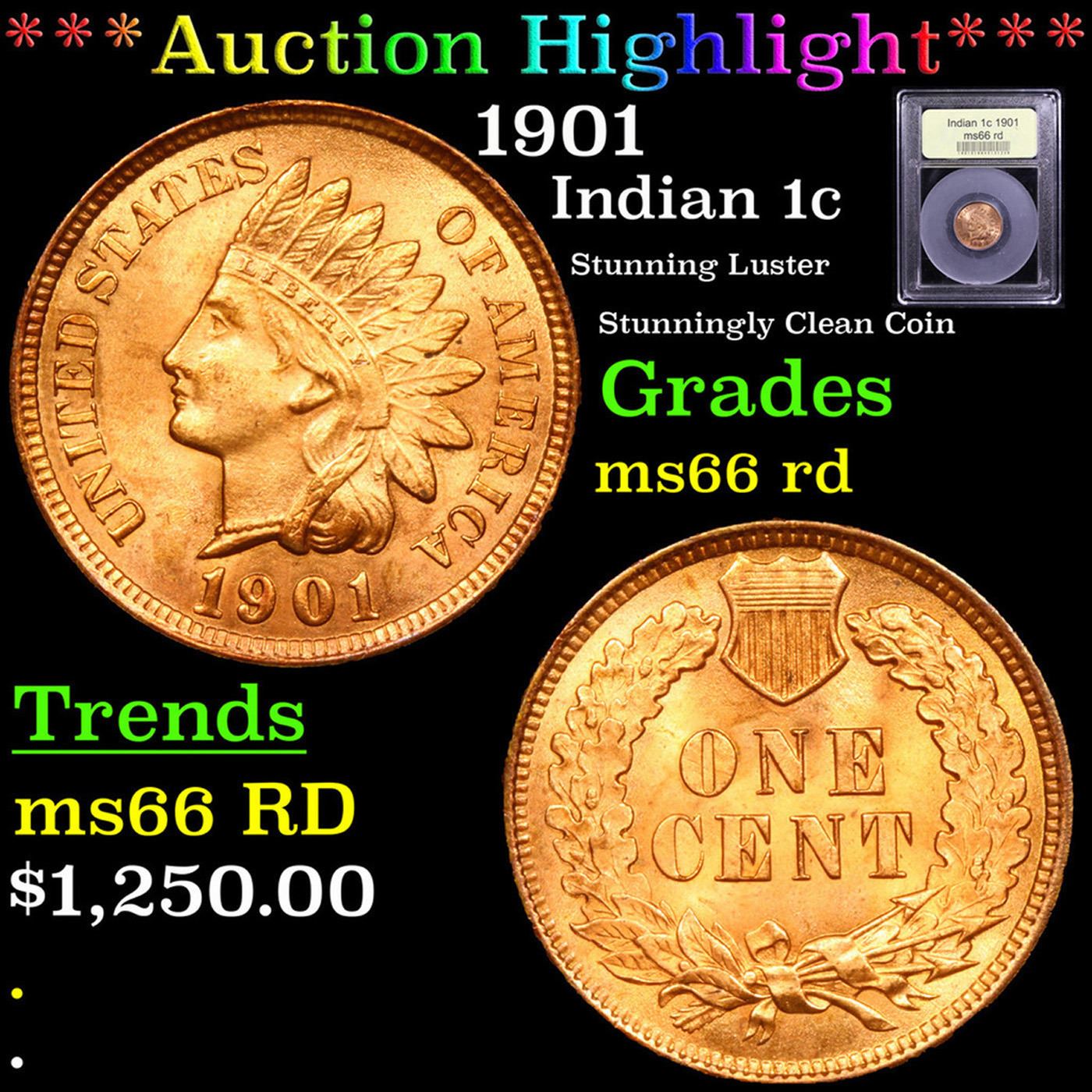 ***Auction Highlight*** 1901 Indian Cent 1c Graded GEM+ Unc RD By USCG.