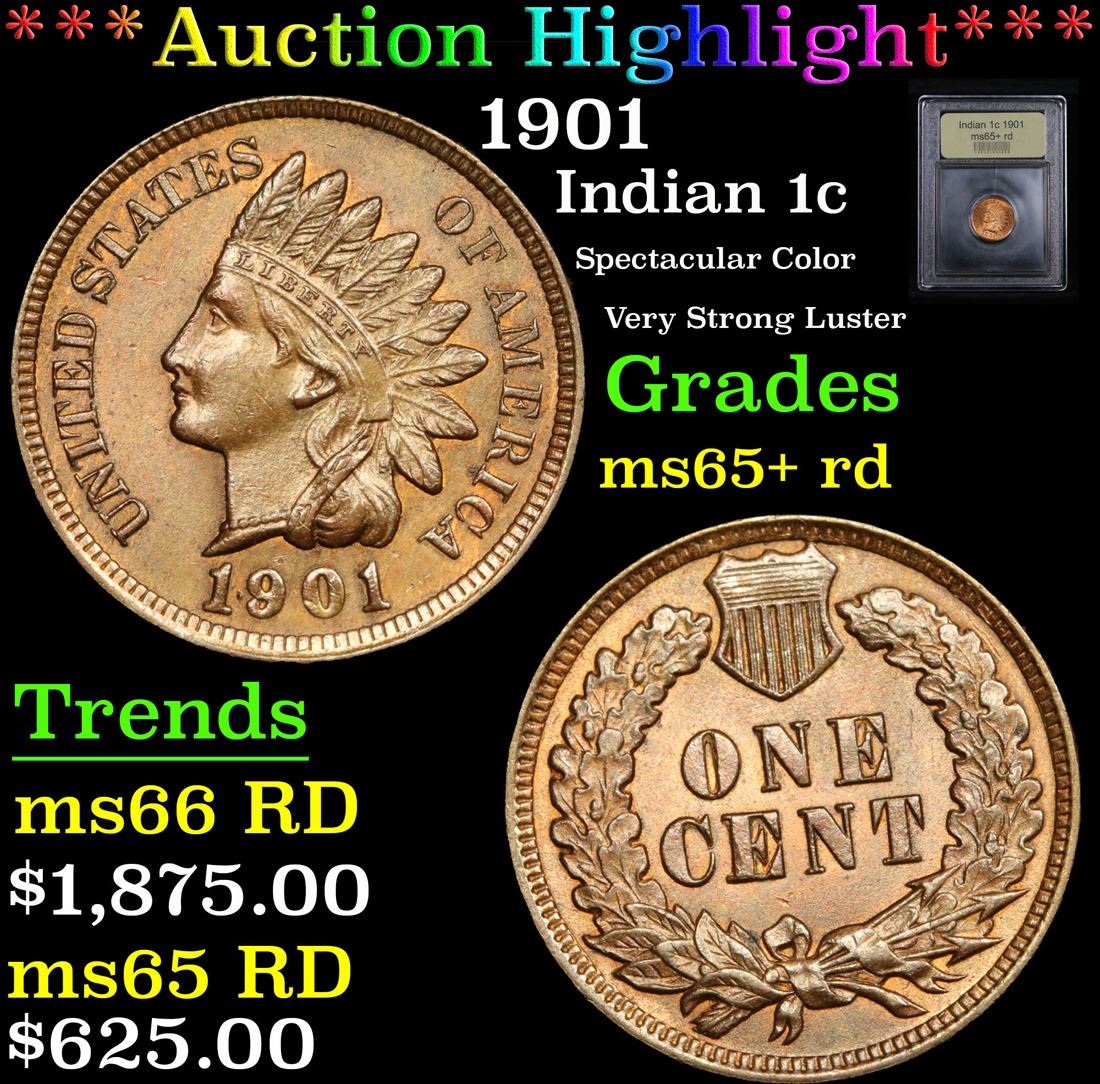 ***Auction Highlight*** 1901 Indian Cent 1c Graded Gem+ Unc RD By USCG. Spectacular Color Very Strong Luster A Corey's Pick, Bid to Win, Don't let it get Away Coin