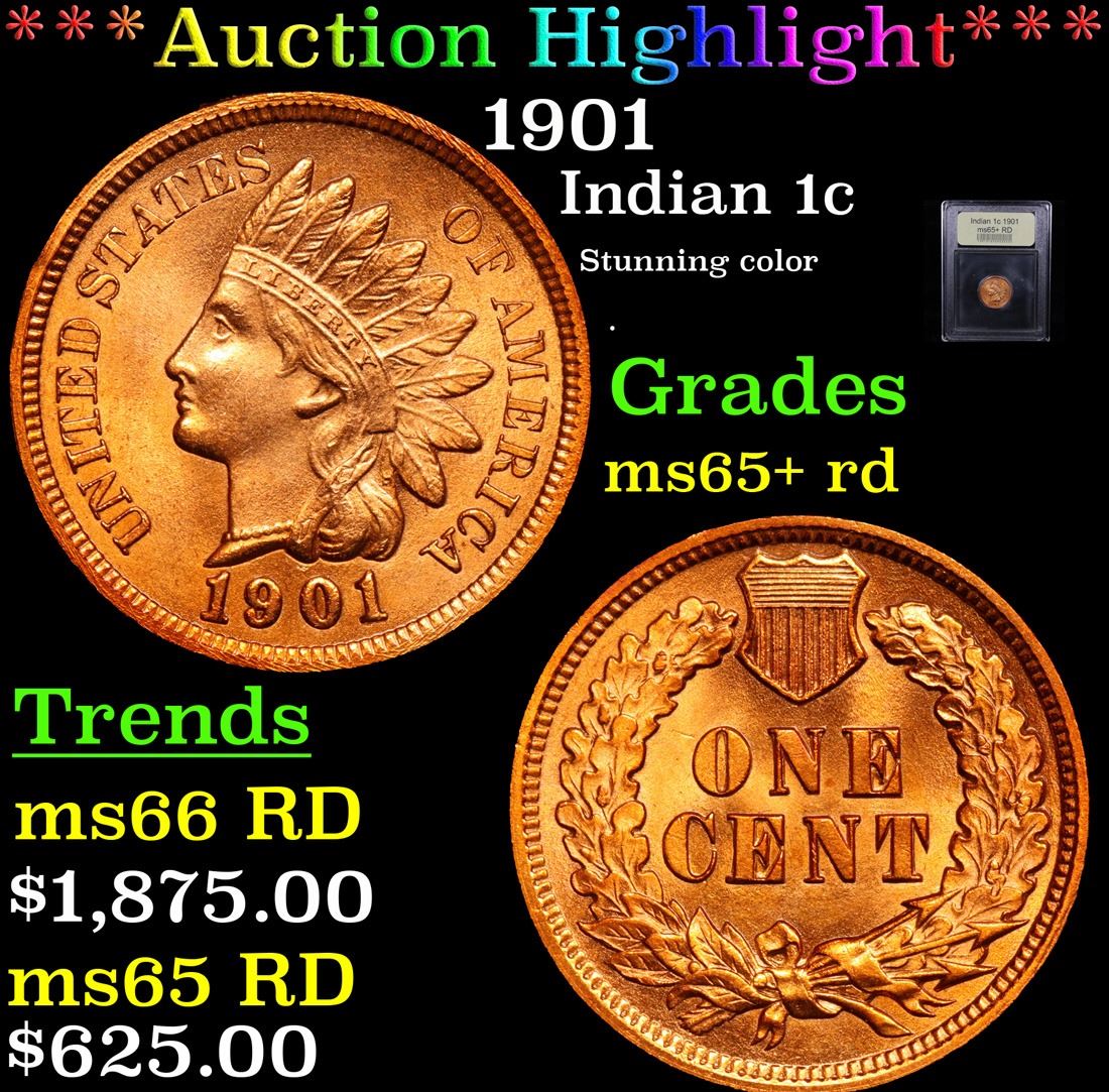 ***Auction Highlight*** 1901 Stunning color . Indian Cent 1c Graded Gem+ Unc RD By USCG. A Corey's Pick, Bid to Win, Don't let it get Away Coin