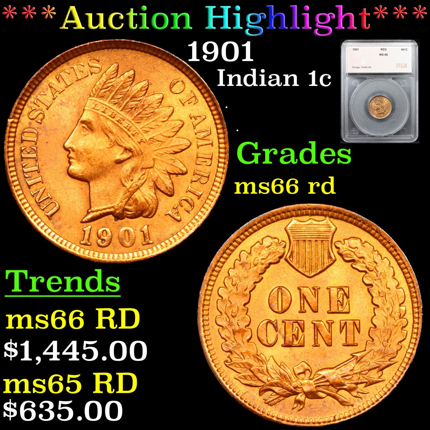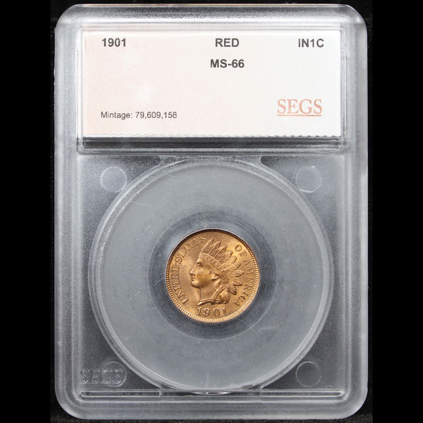 ***Auction Highlight*** 1901 Indian Cent 1c Graded ms66 rd By SEGS.