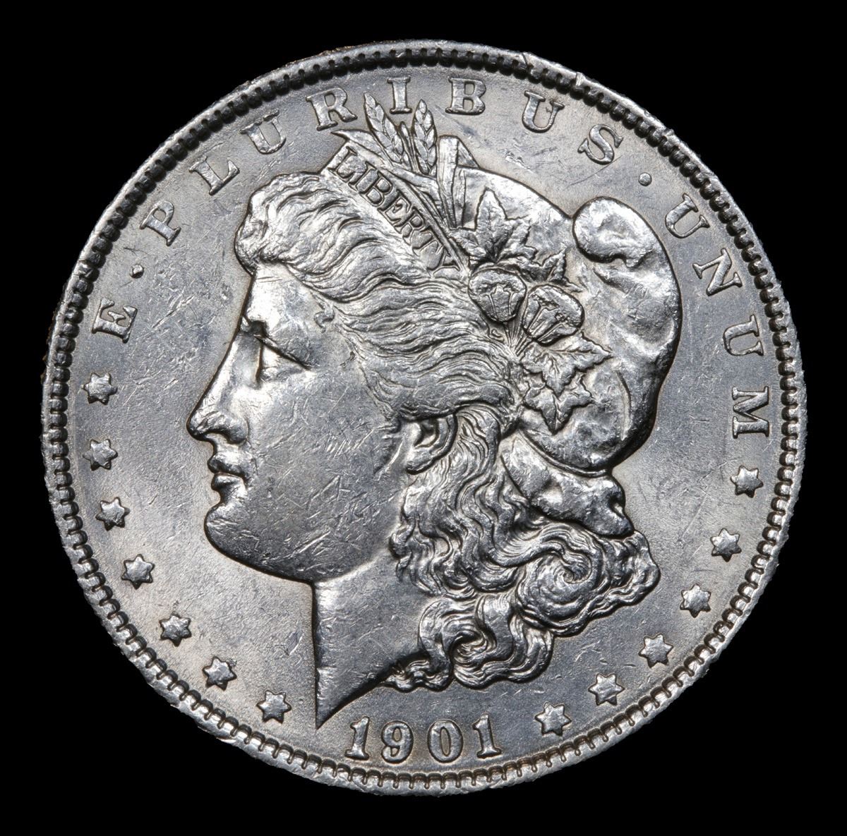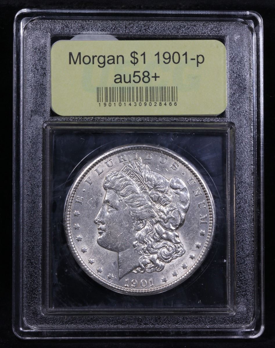 ***Auction Highlight*** 1901-p Morgan Dollar $1 Graded Choice AU/BU Slider+ By USCG. A highly lustrous, brilliant white example with sharp to full striking detail throughout the design. Scarcest of the Philadelphia Mint Morgan dollar issues in Mint State, the 1901 is a strong performer in all grades from au55 on up. The example at hand is a whisper away from Mint State with only the slightest rub at the very high points A Corey's Pick, Bid to Win, Don't let it get Away Coin