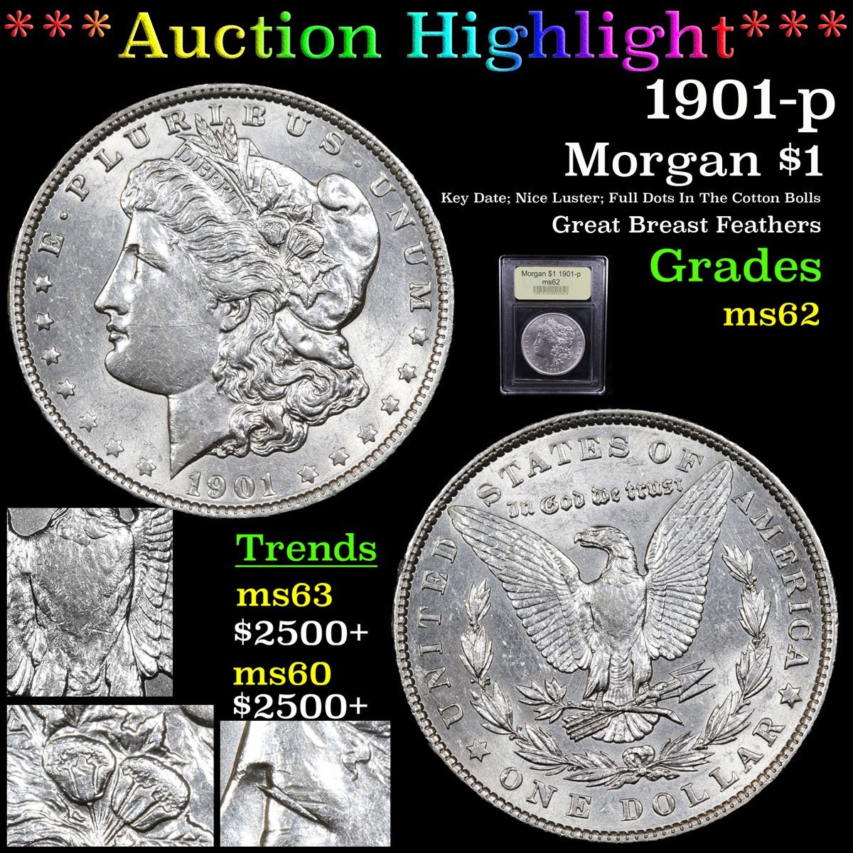 ***Auction Highlight*** 1901-p Key Date; Nice Luster; Full Dots In The Cotton Bolls Great Breast Feathers Morgan Dollar $1 Graded Select Unc By USCG. Awesome Example of the rareist Philadelphia Issued Morgan Dollar In Unc Condition. Not a wisper of wear. a True Find A Corey's Pick, Bid to Win, Don't let it get Away Coin