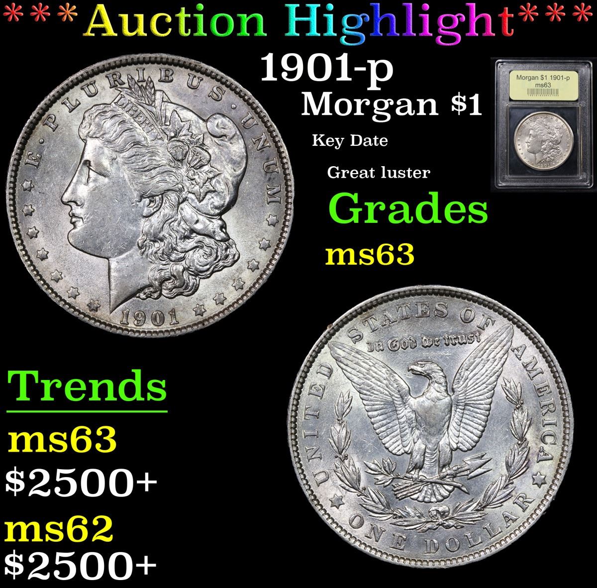 ***Auction Highlight*** 1901-p Key Date Great luster Morgan Dollar $1 Graded Select Unc By USCG. Superb luster, great strike, nice breast feathers, ultra rare in this grade A Corey's Pick, Bid to Win, Don't let it get Away Coin