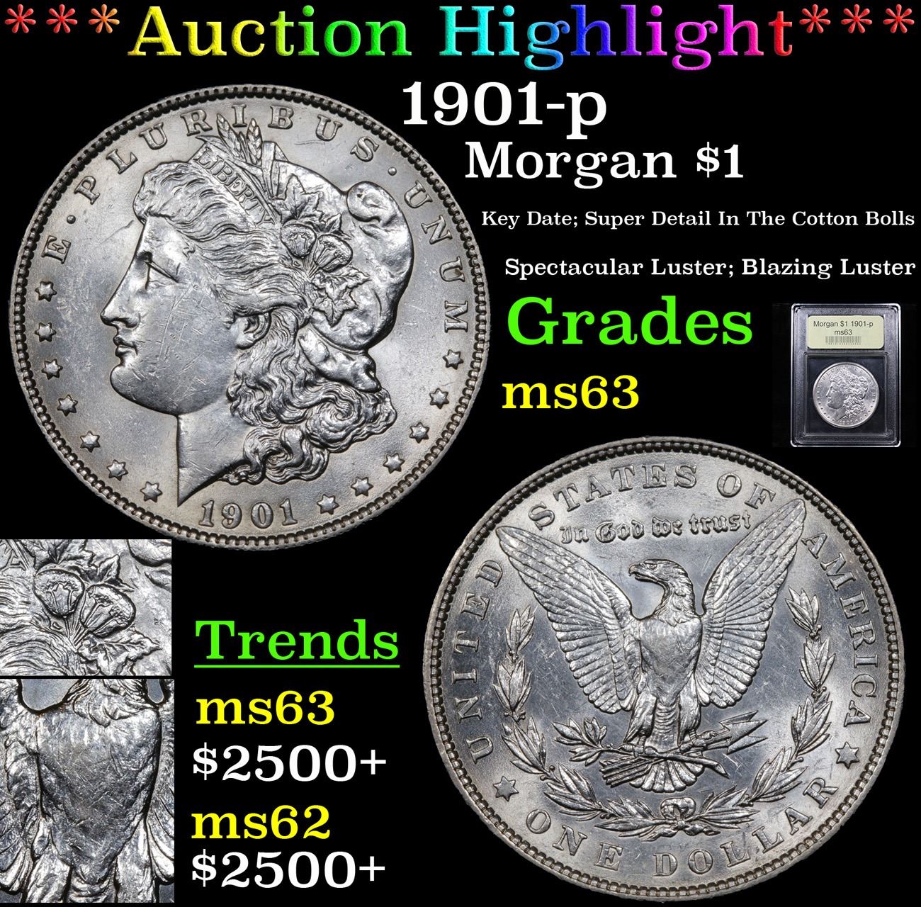***Auction Highlight*** 1901-p Key Date; Super Detail In The Cotton Bolls Spectacular Luster; Blazing Luster Morgan Dollar $1 Graded Select Unc By USCG. Spectacular Luster highlights this ultra rare, in fact the rarest P mint Morgan in uncirculated condition in the entire series. This beautiful 1901-p has blazing luster, a great strike with nice breast feathers, super detail in the cotton bolls. Super eye appeal and blast white. A great addition to any collection. A Corey's Pick, Bid to Win, Don't let it get Away, you might not find its equal Coin. I give this coin my highest recommendation