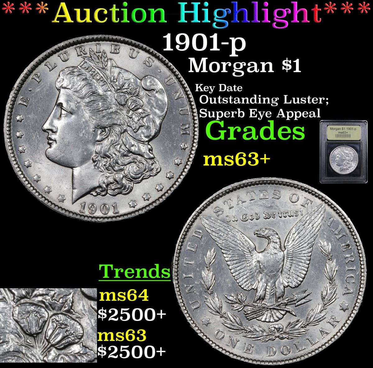 ***Auction Highlight*** 1901-p Morgan Dollar $1 Graded Select+ Unc By USCG. Up for auction is a spectacular rarity. A 1901-p in ms63+. The 1901-p is the rarest P mint Morgan in the entire series, including the 1894-p. This example has outstanding Luster, a strong strike and superb eye appeal. One of the nicest we have ever brought to auction. Just stunning.