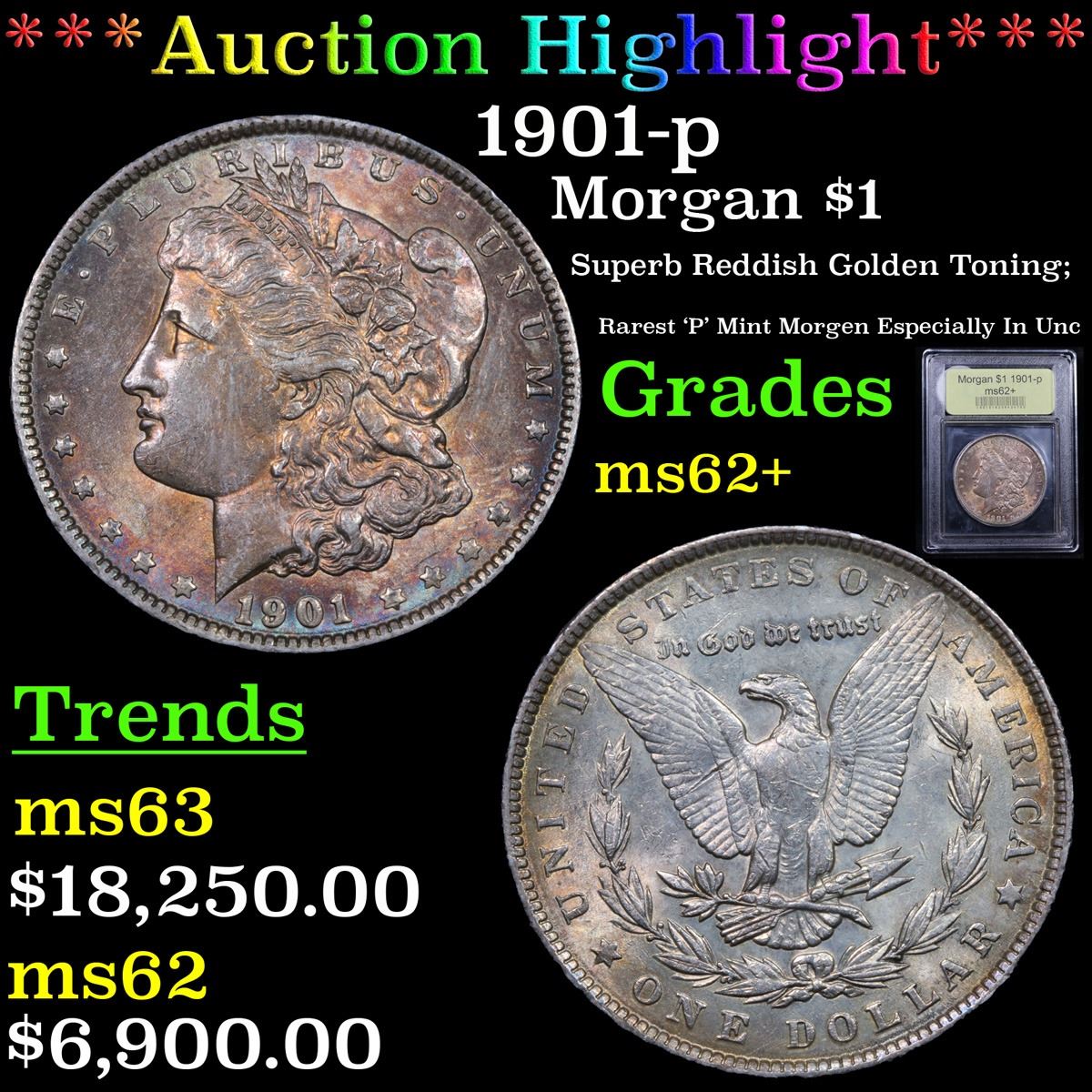 ***Auction Highlight*** 1901-p Morgan Dollar $1 Graded Select Unc By USCG. Up for Auction is The scarcest Philadelphia Minted Morgan in uncirculated Condition, The 1901-p. A Major Rarity This Fine. The 1901 Morgan dollar is an elite condition rarity. Despite a mintage in excess of 6.9 million coins, the date is scarce in Mint State, rapidly decreasing in availability at each ascending grade level. It is believed that most of the coins not released into circulation at the time of issue were destroyed after 1918 under the terms of the Pittman Act. For most collectors, the finest 1901 Morgan dollars collectible are in About Uncirculated condition. The rarity of the 1901 Morgan dollar in high grade is not at all overstated. This ms62+ example has superb reddish golden toning atop the usual satin luster. The strike is a trifle soft on the eagle's breast feathers but is bold elsewhere. To the unaided eye, the coin appears a grade point finer, but a loupe reveals a few faint marks that affirm the MS62+ designation. We look forward to this coin's sale with great anticipation. A Corey's Pick, Bid to Win, Don't let it get Away, you might not find its equal Coin. I give this coin my highest recommendation