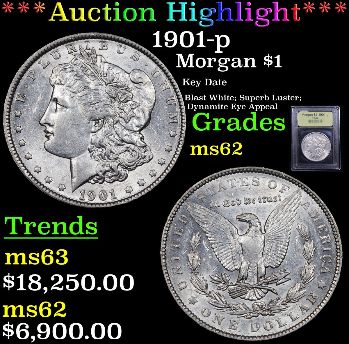 ***Auction Highlight*** 1901-p Morgan Dollar $1 Graded Select Unc By USCG. Up for Auction is a Lustrous example of this very scarce 1901-p Key Date Morgan. Blast White, superb luster and dynamite eye appeal highlight this terrific Rarity. Well struck with super detail in all the devices. A terrific example of the scarcest Philadelphia minted Morgan in Uncirculated condition. A Corey's Pick, Bid to Win, Don't let it get Away, you might not find its equal Coin. I give this coin my highest recommendation