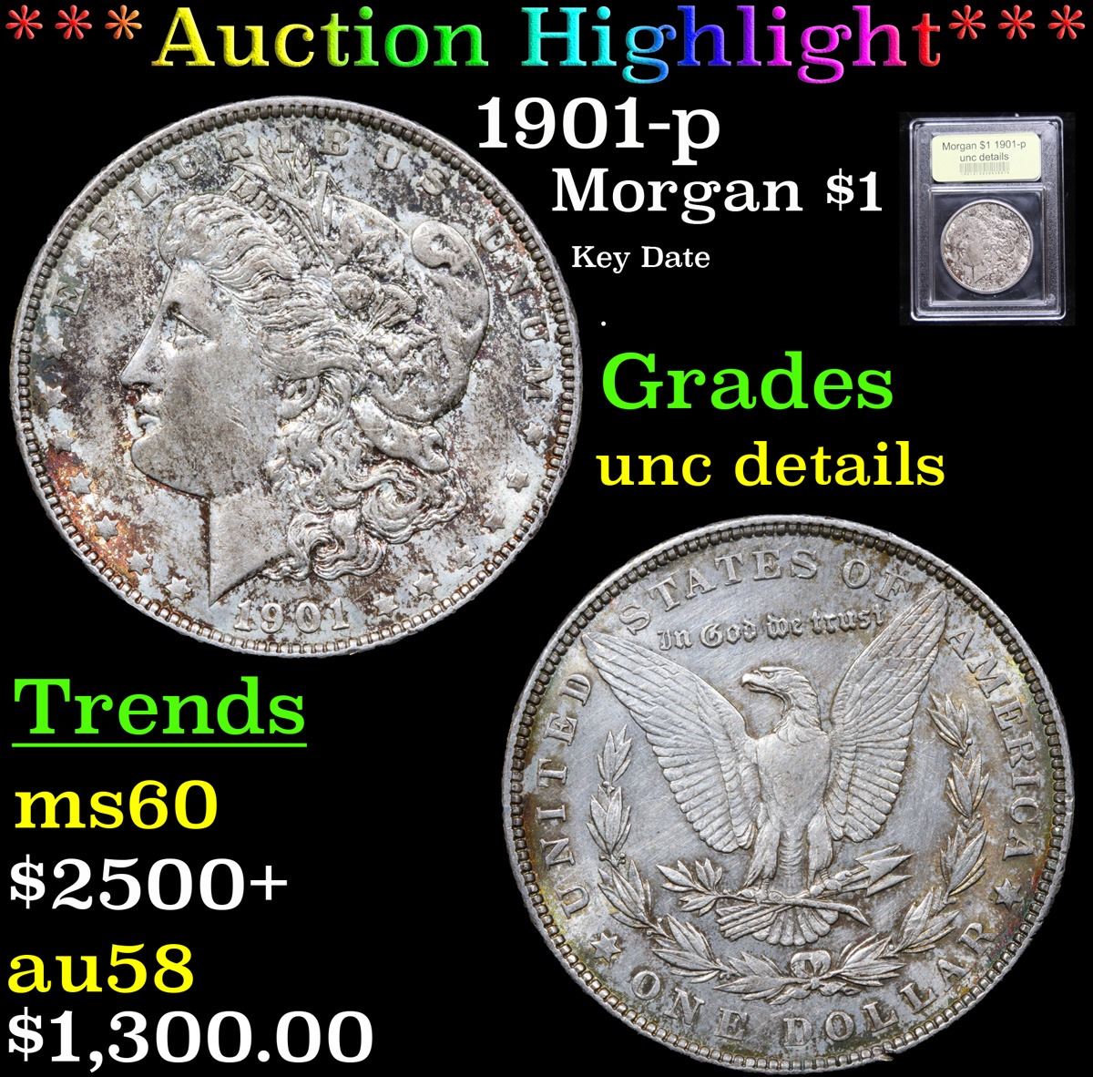 ***Auction Highlight*** 1901-p Key Date . Morgan Dollar $1 Graded Unc Details By USCG.