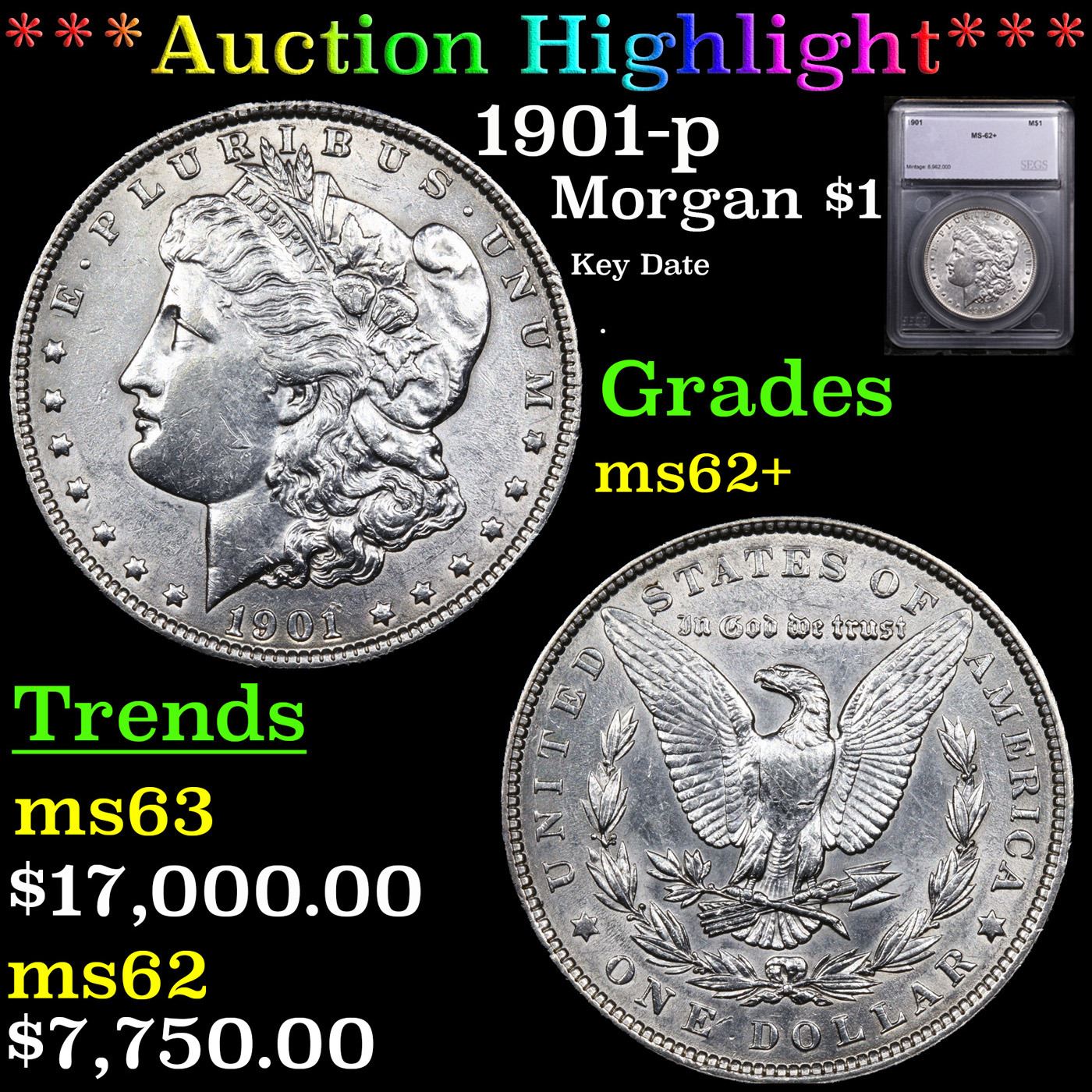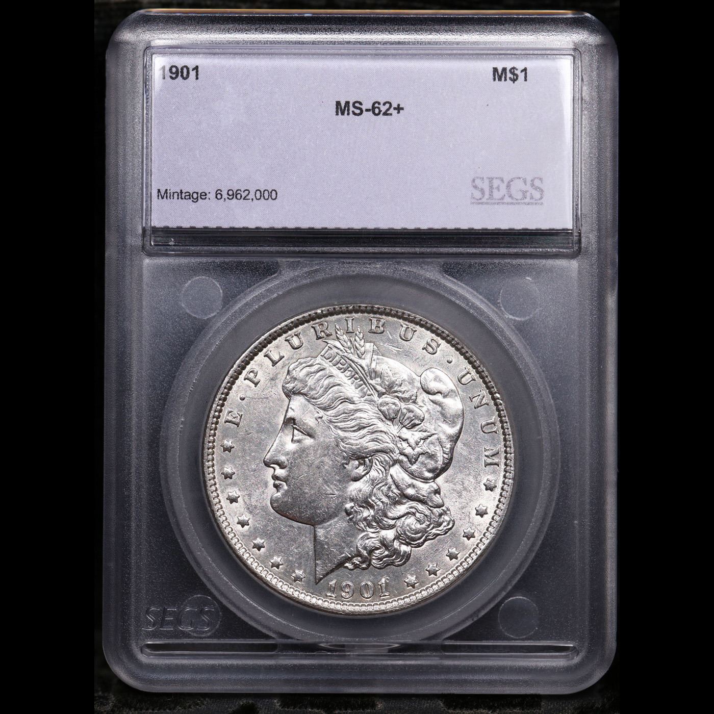 ***Auction Highlight*** 1901-p Morgan Dollar $1 Graded ms62+ BY SEGS. A Corey's Pick, Bid to Win, Don't let it get Away, you might not find its equal Coin