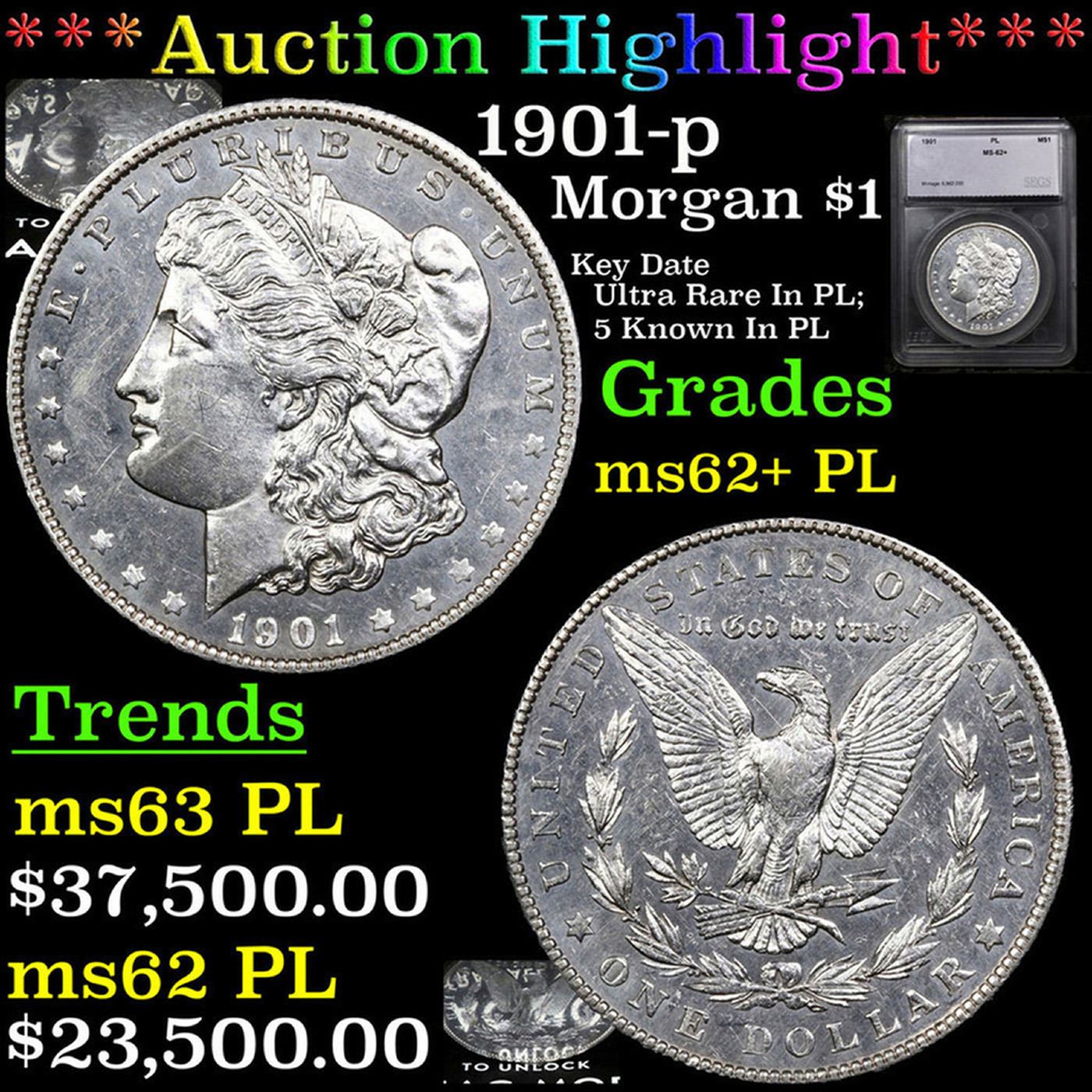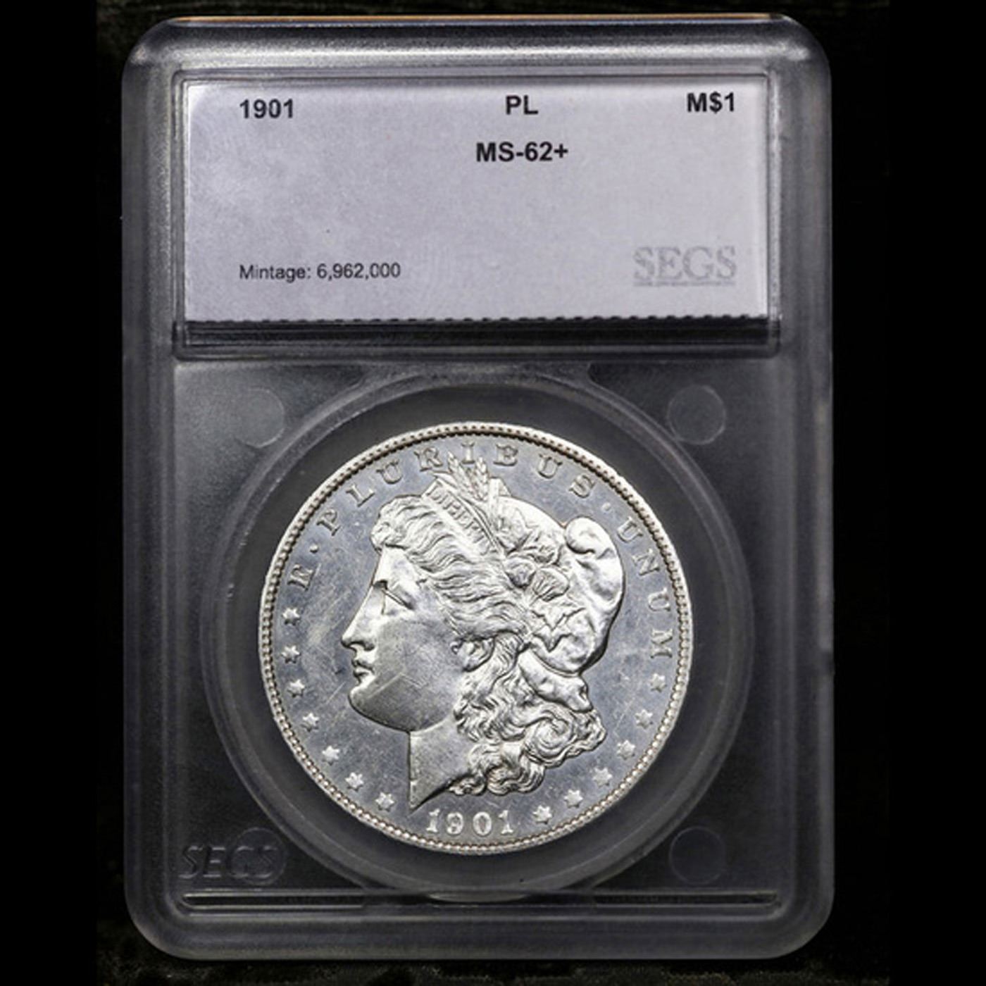 ***Auction Highlight*** 1901-p Morgan Dollar $1 Graded ms62+ PL By SEGS. A Corey's Pick, Bid to Win, Don't let it get Away, you might not find its equal Coin. I give this coin my highest recommendation