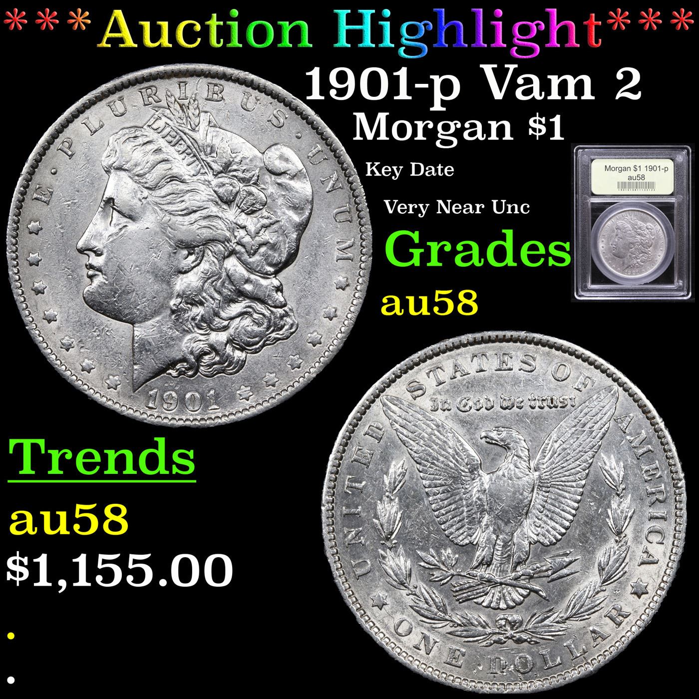 ***Auction Highlight*** 1901-p Vam 2 Morgan Dollar $1 Graded Choice AU/BU Slider By USCG.