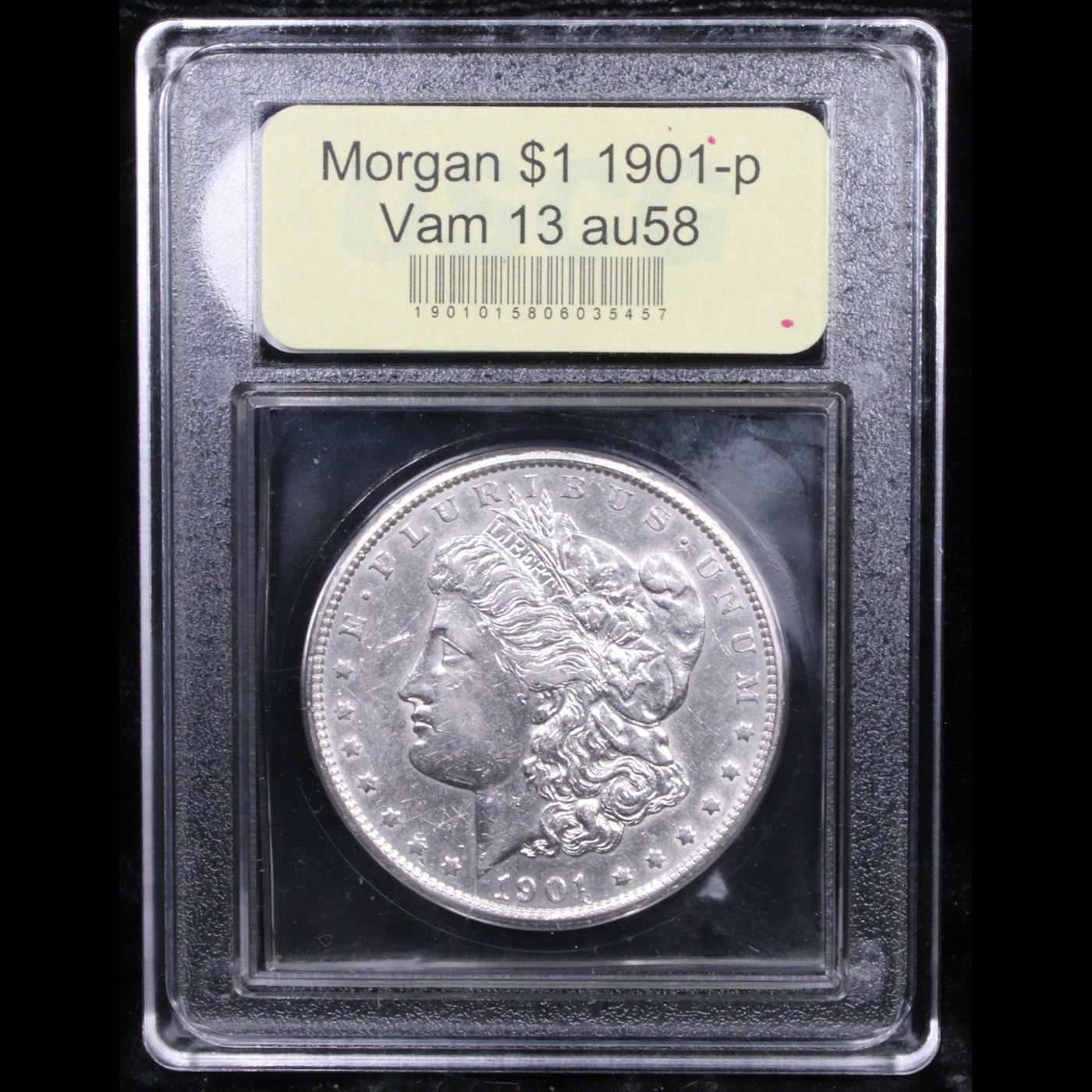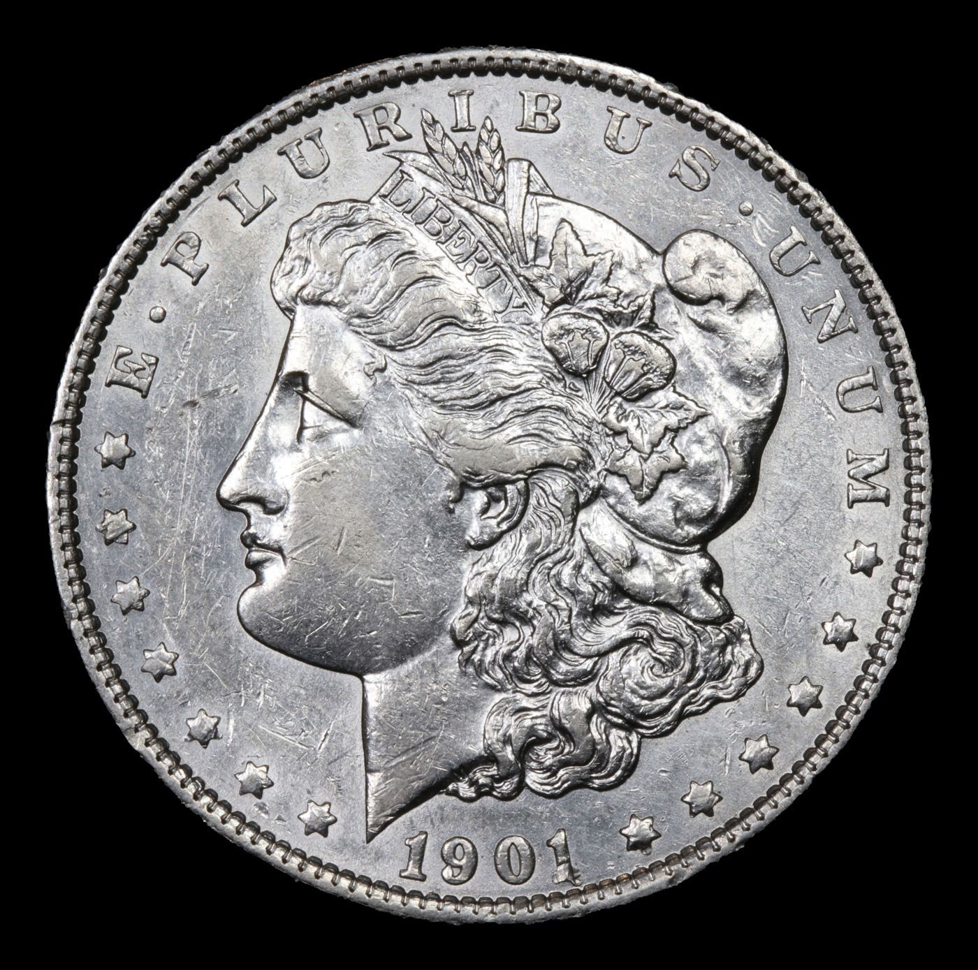 ***Auction Highlight*** 1901-p Vam 13 I3 R5 Morgan Dollar $1 Graded Choice AU/BU Slider By USCG. Otherwise silver-gray surfaces are enhanced by splashes of sandy-apricot patina that are bolder and more extensive on the reverse. A leading rarity among Mint State Morgan dollars, the 1901 enjoys heightened demand in the finest circulated grades. A Corey's Pick, Bid to Win, Don't let it get Away Coin