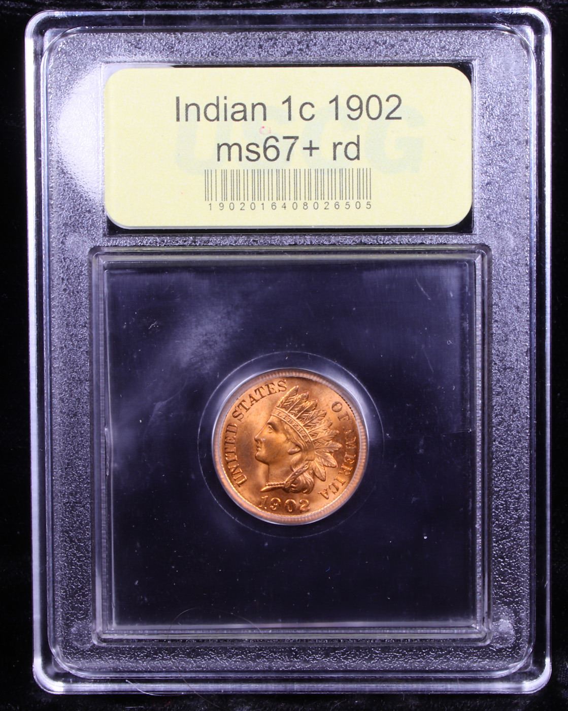 ***Auction Highlight*** 1902 Indian Cent 1c Graded GEM++ RD By USCG.        Both sides of this incredibly vibrant orange-gold example are ablaze with satiny luster, and totally void of unsightly blemishes. Although slight weakness is noted at the tips of the Indian's feathers--typical for the issue--this example possesses an above average strike as evinced by the bold shield details and complete dentilation. This is as close to a perfect Indian cent as one is likely to find. Tied for 2nd finest known. A fleeting opportunity to purchase one of the very finest examples of this popular issue. A Corey's Pick, Bid to Win, Don't let it get Away, you might not find its equal Coin.  I give this coin my highest recommendation