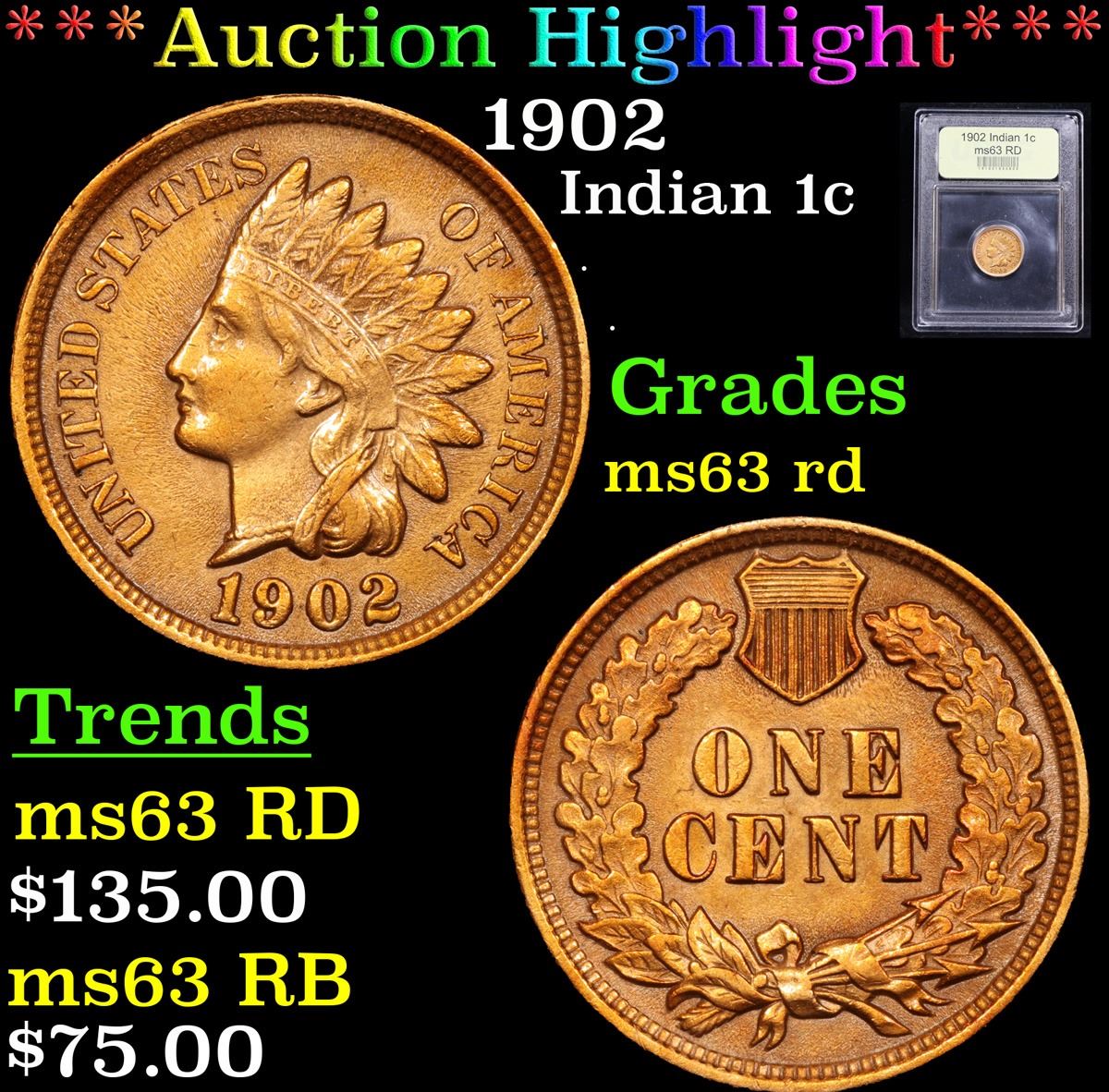 ***Auction Highlight*** 1902 . . Indian Cent 1c Graded Select Unc RD By USCG. A Corey's Pick, Bid to Win, Don't let it get Away Coin