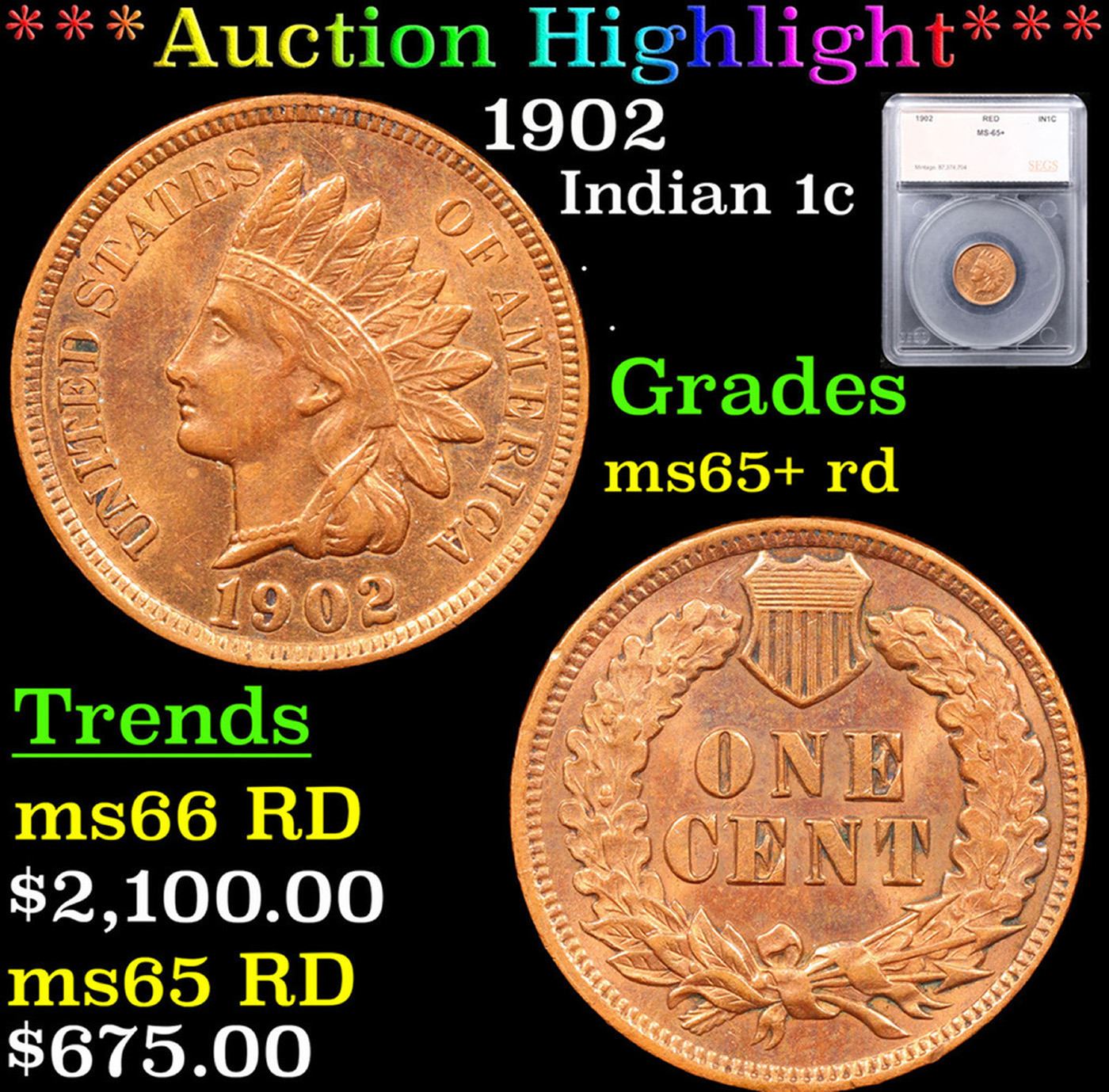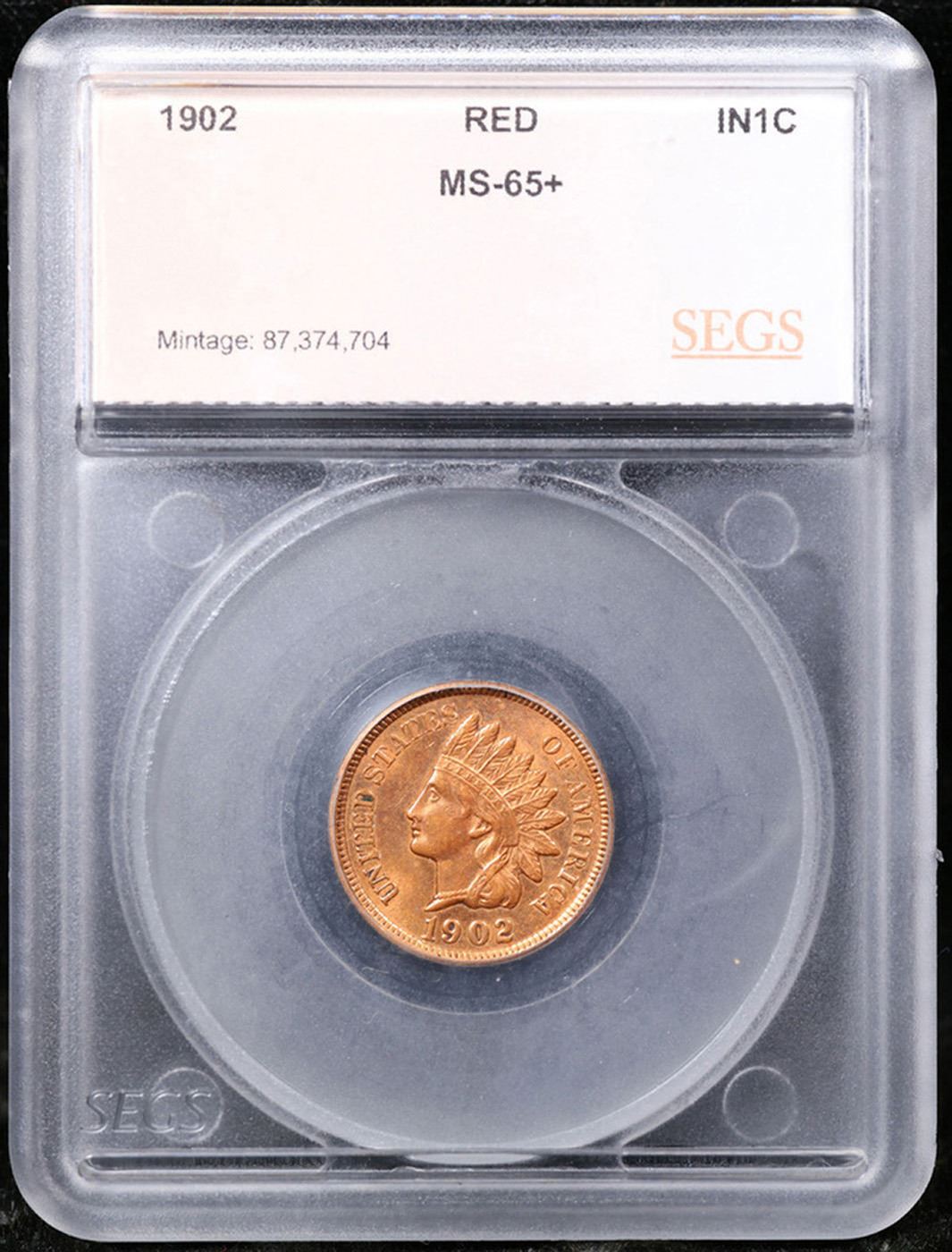 ***Auction Highlight*** 1902 Indian Cent 1c Graded ms65+ rd By SEGS. A Corey's Pick, Bid to Win Coin