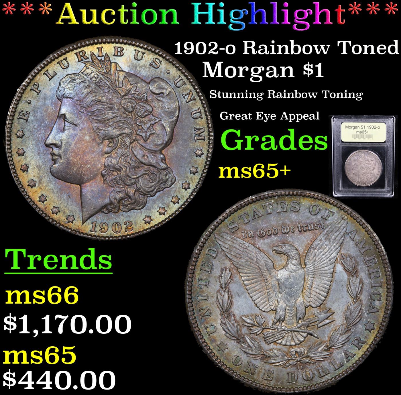 ***Auction Highlight*** 1902-o Rainbow Toned Morgan Dollar $1 Graded GEM+ Unc By USCG. A Corey's Pick, Bid to Win Coin