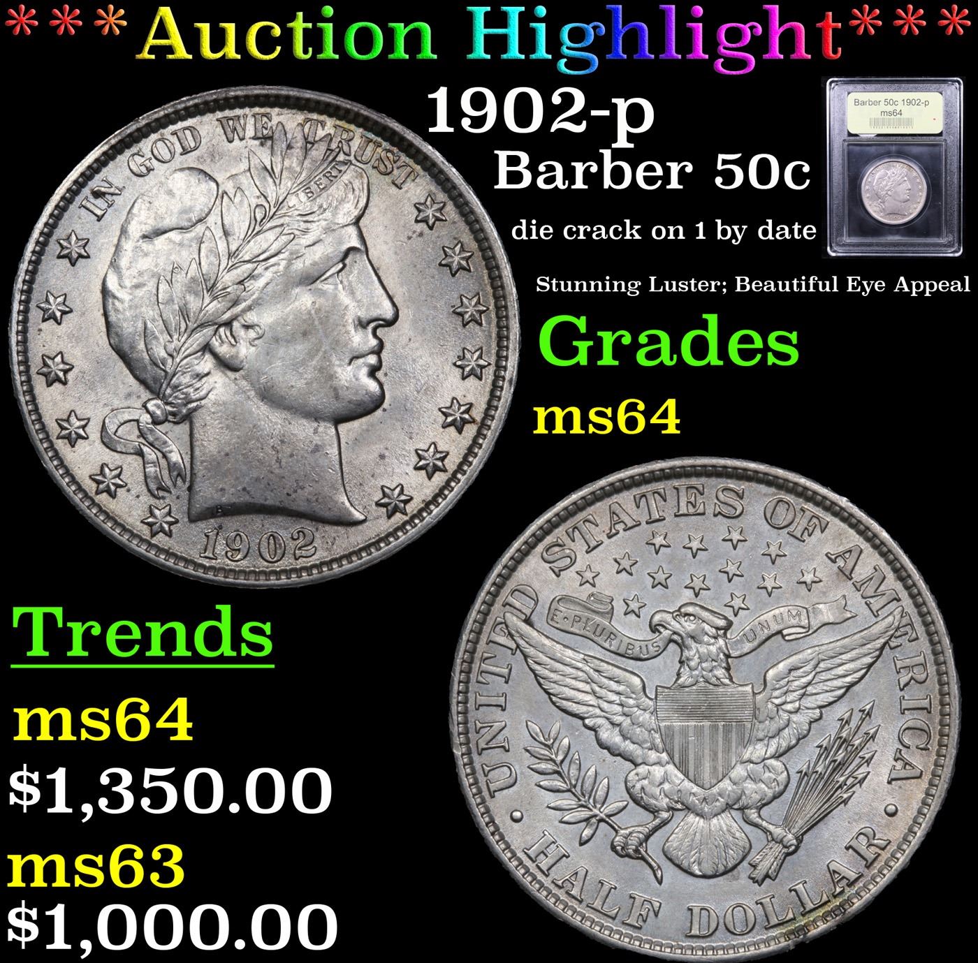 ***Auction Highlight*** 1902-p Barber Half Dollars 50c Graded Choice Unc By USCG. A Corey's Pick, Bid to Win, Don't let it get Away Coin