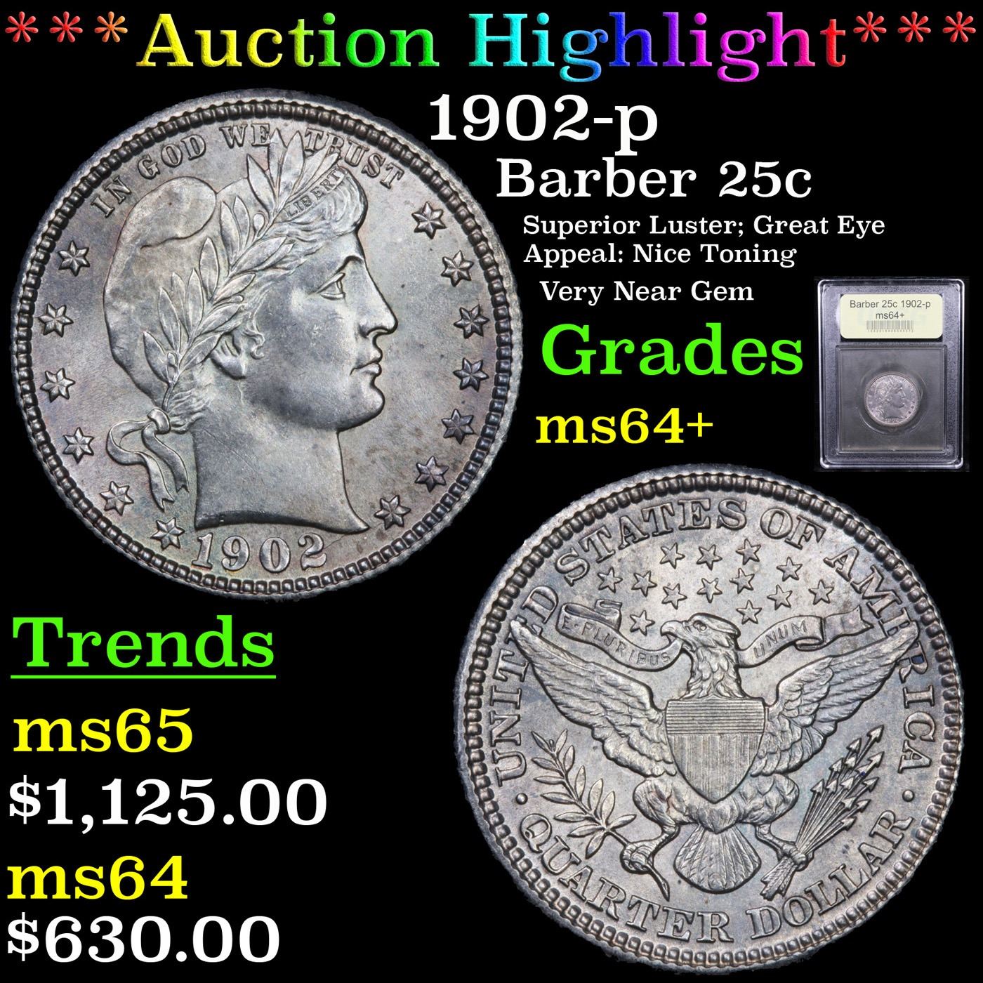 ***Auction Highlight*** 1902-p Barber Quarter 25c Graded Choice+ Unc BY USCG. A Corey's Pick, Bid to Win Coin