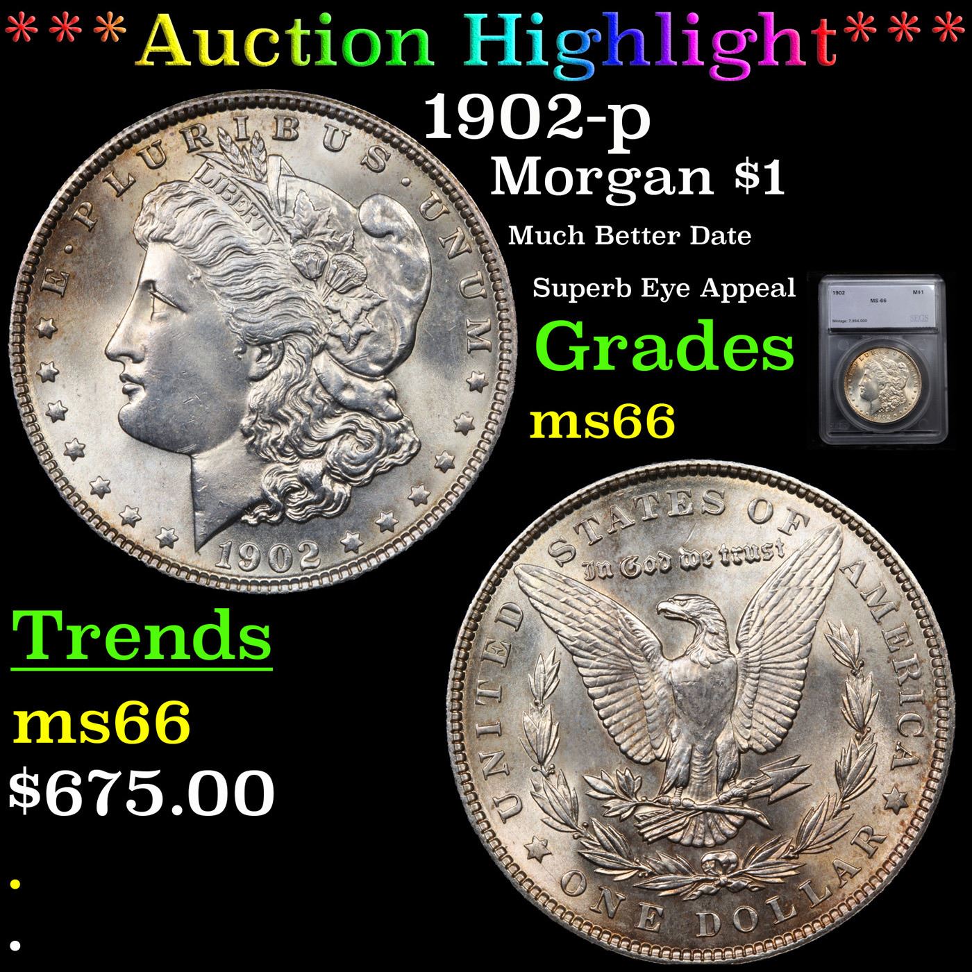 ***Auction Highlight*** 1902-p Morgan Dollar $1 Graded ms66 By SEGS.