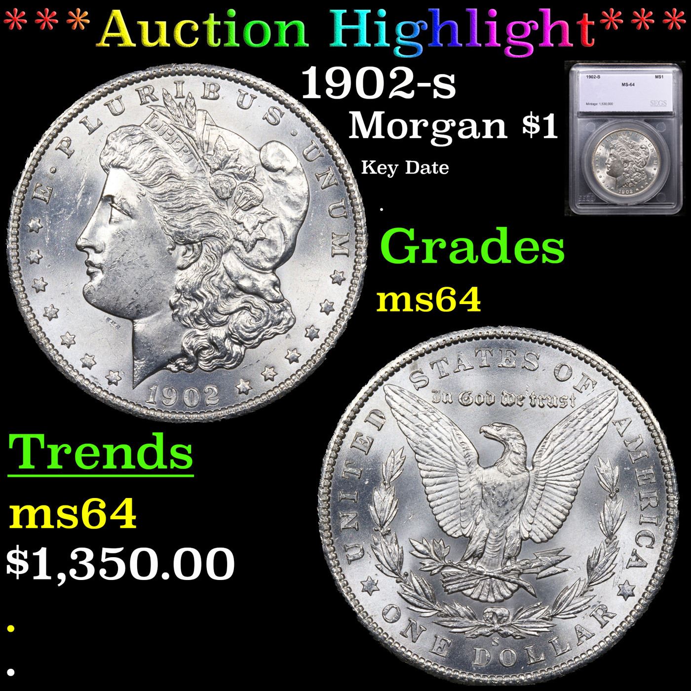 ***Auction Highlight*** 1902-s Morgan Dollar $1 Graded ms64 BY SEGS. A Corey's Pick, Bid to Win, Don't let it get Away, you might not find its equal Coin. I give this coin my highest recommendation