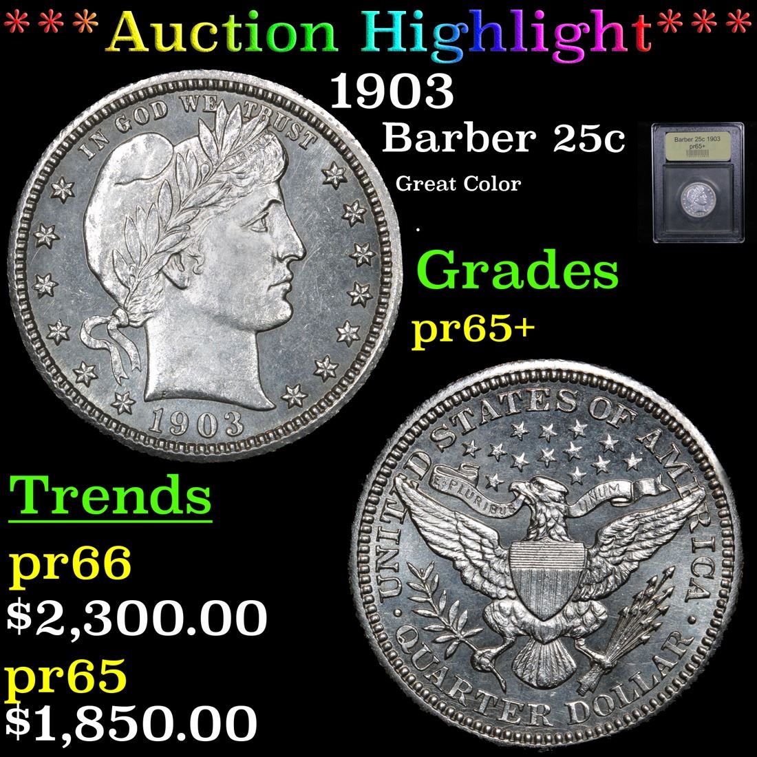 ***Auction Highlight*** 1903 Great Color . Barber Quarter 25c Graded GEM+ Proof By USCG. A Corey's Pick, Bid to Win, Don't let it get Away, you might not find its equal Coin