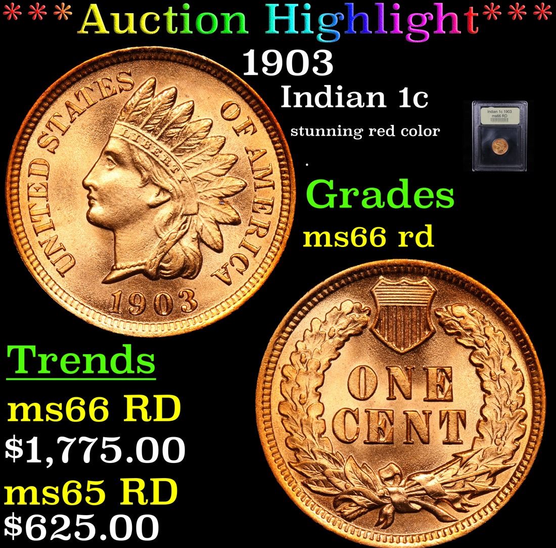 ***Auction Highlight*** 1903 stunning red color . Indian Cent 1c Graded GEM+ Unc RD By USCG. A Corey's Pick, Bid to Win Coin