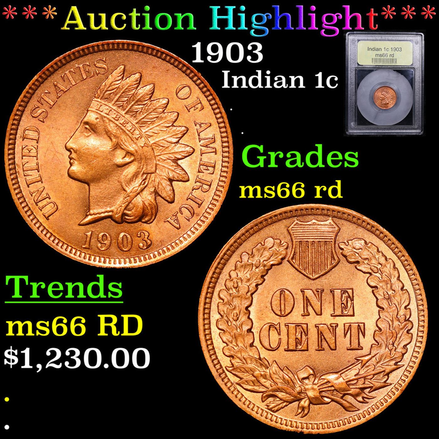 ***Auction Highlight*** 1903 Indian Cent 1c Graded GEM+ Unc RD By USCG.