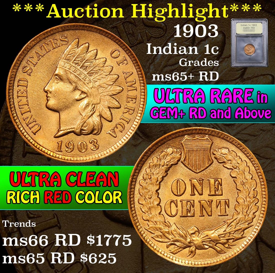 ***Auction Highlight*** 1903 Indian Cent 1c Graded Gem+ Unc RD by USCG.