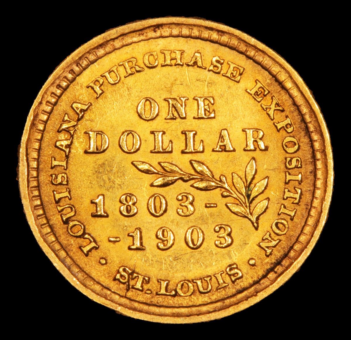 ***Auction Highlight*** 1903 McKinley Louisiana Purchase Gold Commem Dollar 1 Grades Select+ Unc. Scarce Gold Commemorative. Issued in 1903 to celebrate the 100th Anniversary of the Louisiana Purchase. This Commemorative was Issued with Two Obverses and One Reverse. The Two Obverses are the Jefferson and the Other is the McKinley. Jefferson the Obvious 1st Choice as he was the President at the Time of the Purchase from France and the 2nd choice was McKinley, who had Died in Office a Year Prior and had been the One Who Originally Signed the Legislation for the Minting of the Coin.