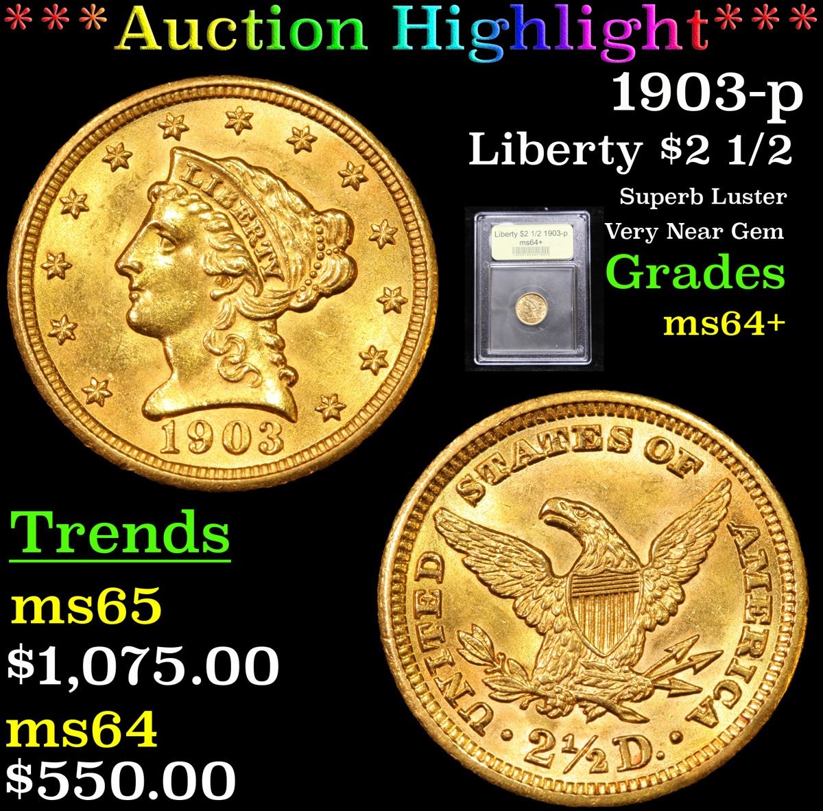 ***Auction Highlight*** 1903-p Superb Luster Very Near Gem Gold Liberty Quarter Eagle $2 1/2 Graded Choice+ Unc By USCG.