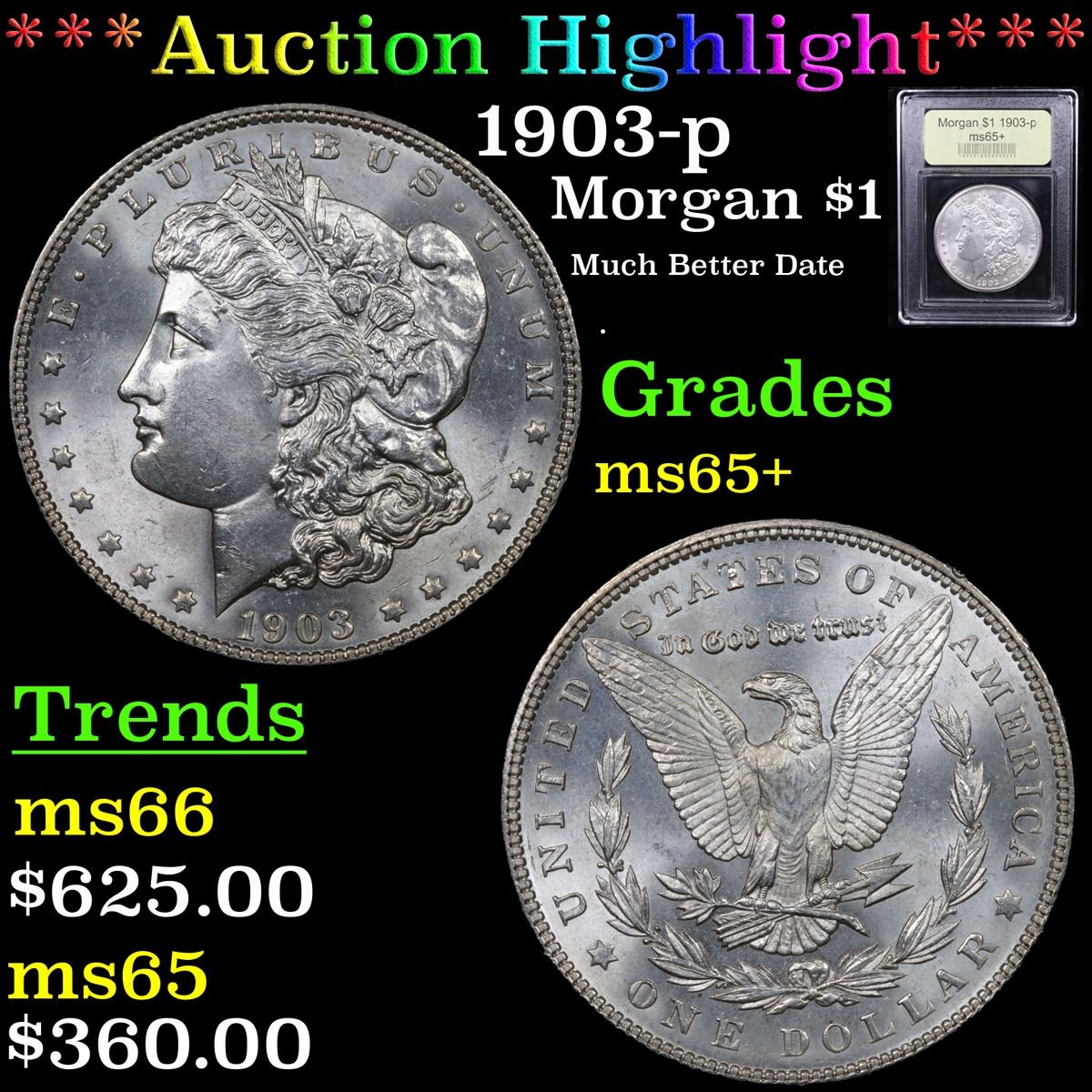 ***Auction Highlight*** 1903-p Morgan Dollar $1 Graded GEM+ Unc By USCG. A Corey's Pick, Bid to Win Coin