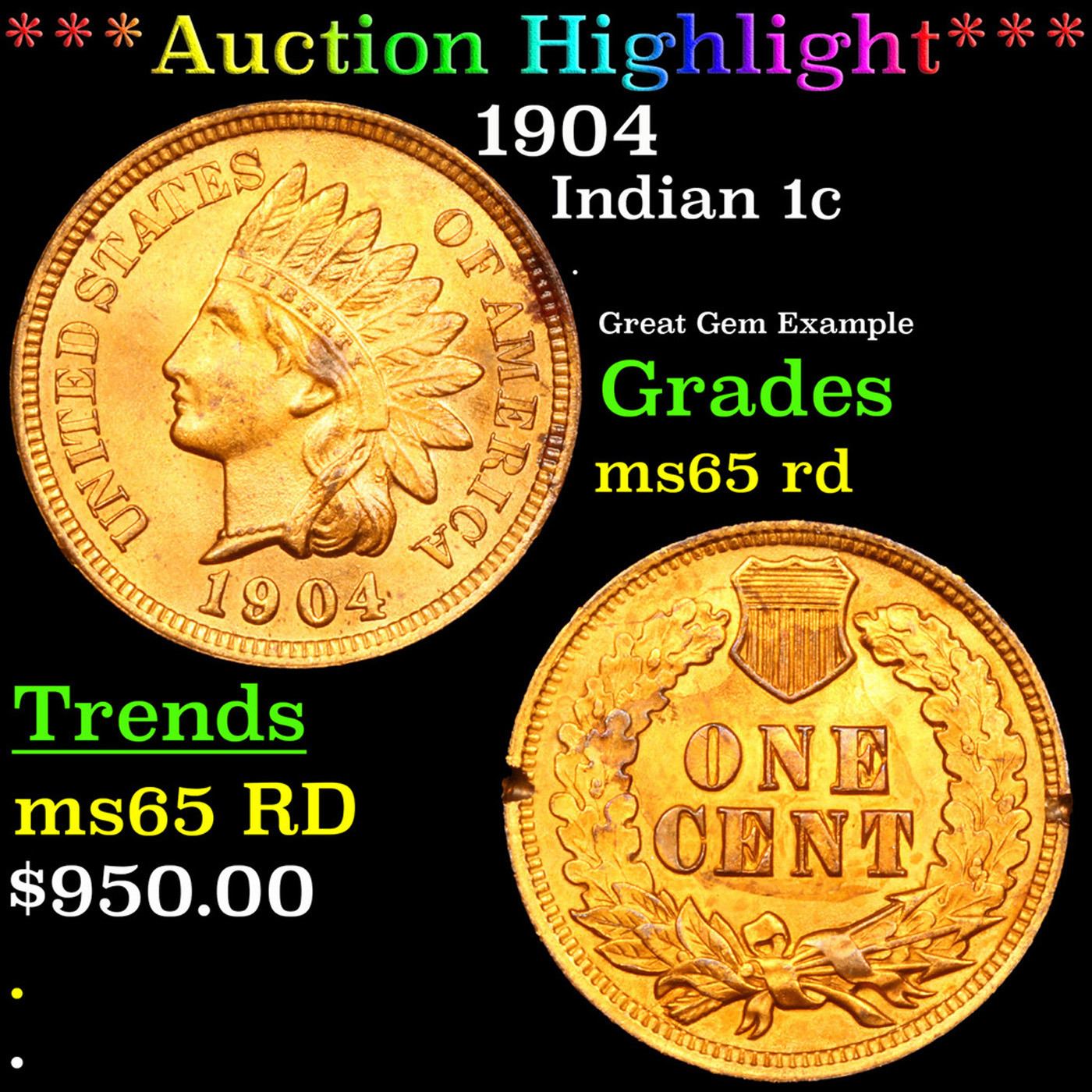 ***Auction Highlight*** 1904 Indian Cent 1c Graded GEM Unc RD BY USCG.