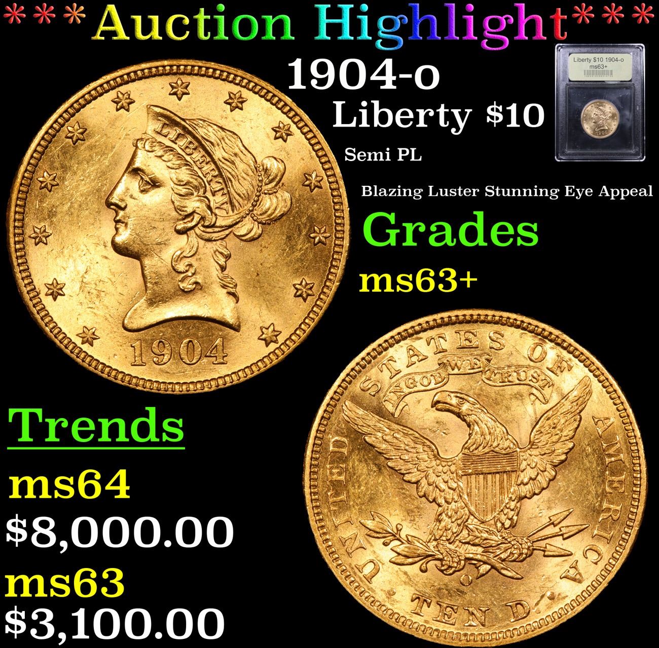 ***Auction Highlight*** 1904-o Semi PL Blazing Luster Stunning Eye Appeal Gold Liberty Eagle $10 Graded Select+ Unc By USCG. A Corey's Pick, Bid to Win Coin