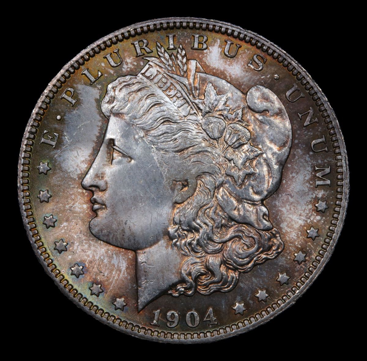 ***Auction Highlight*** 1904-o Rainbow Toned Morgan Dollar $1 Graded GEM+ Unc BY USCG (fc)
