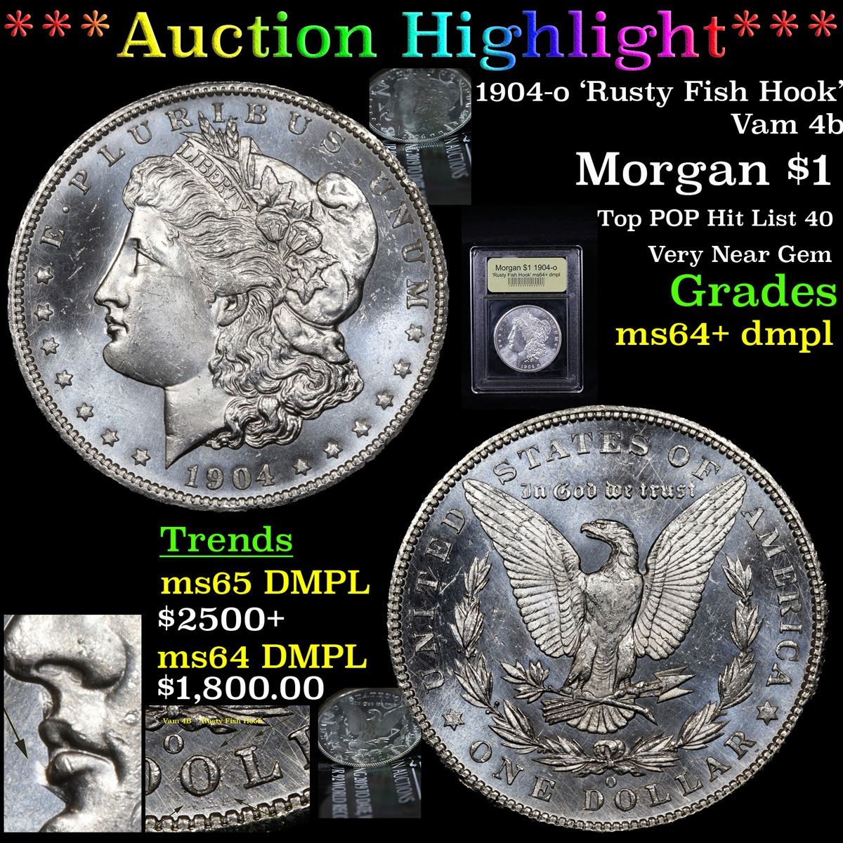 ***Auction Highlight*** 1904-o 'Rusty Fish Hook' Vam 4b Morgan Dollar $1 Graded Choice Unc+ DMPL By