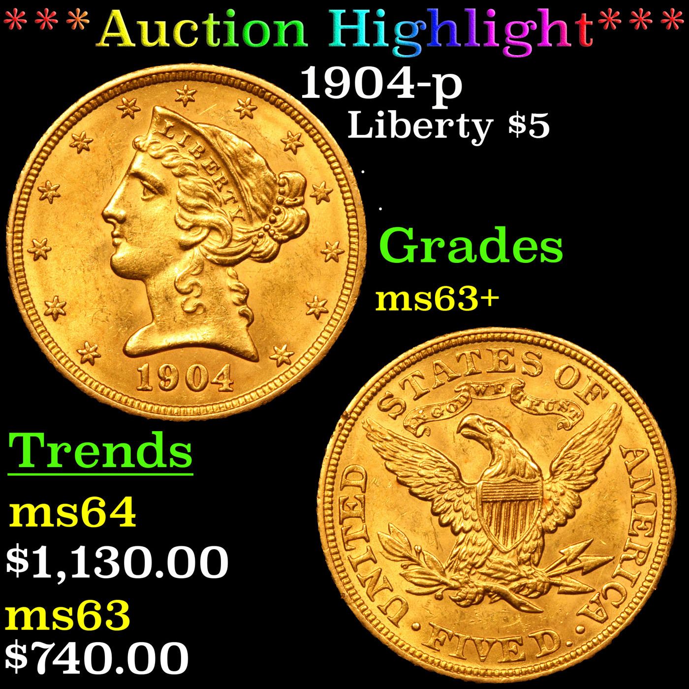 ***Auction Highlight*** 1904-p Gold Liberty Half Eagle $5 Grades Select+ Unc.