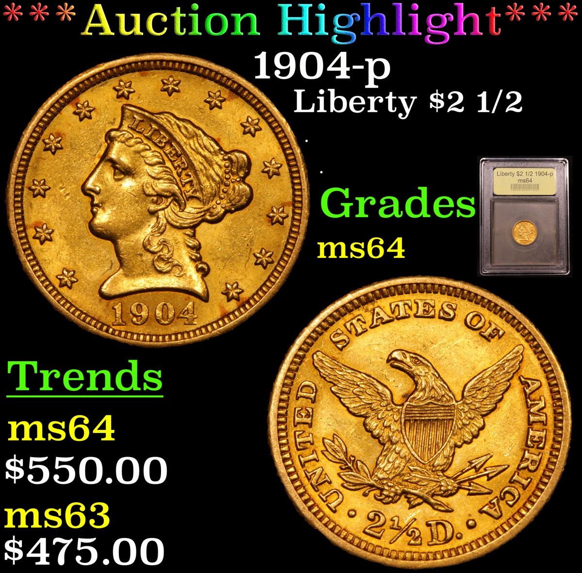 ***Auction Highlight*** 1904-p Gold Liberty Quarter Eagle $2 1/2 Graded Choice Unc By USCG. A Corey's Pick, Bid to Win Coin