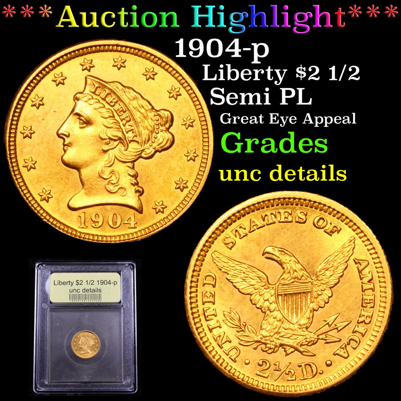 ***Auction Highlight*** 1904-p Gold Liberty Quarter Eagle $2 1/2 Graded Unc Details By USCG (fc)