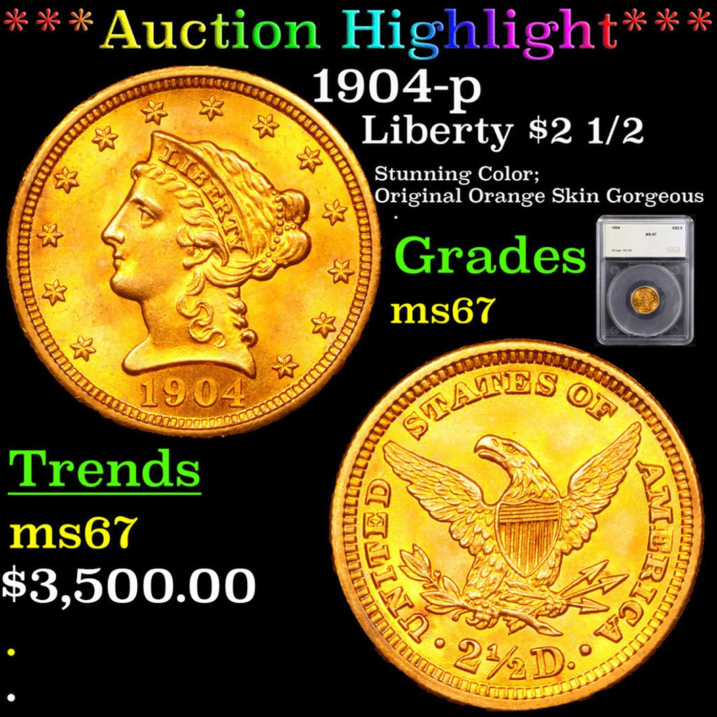 ***Auction Highlight*** 1904-p Gold Liberty Quarter Eagle 2.5 Graded ms67 By SEGS.         A Corey's Pick, Bid to Win, Don't let it get Away Coin
