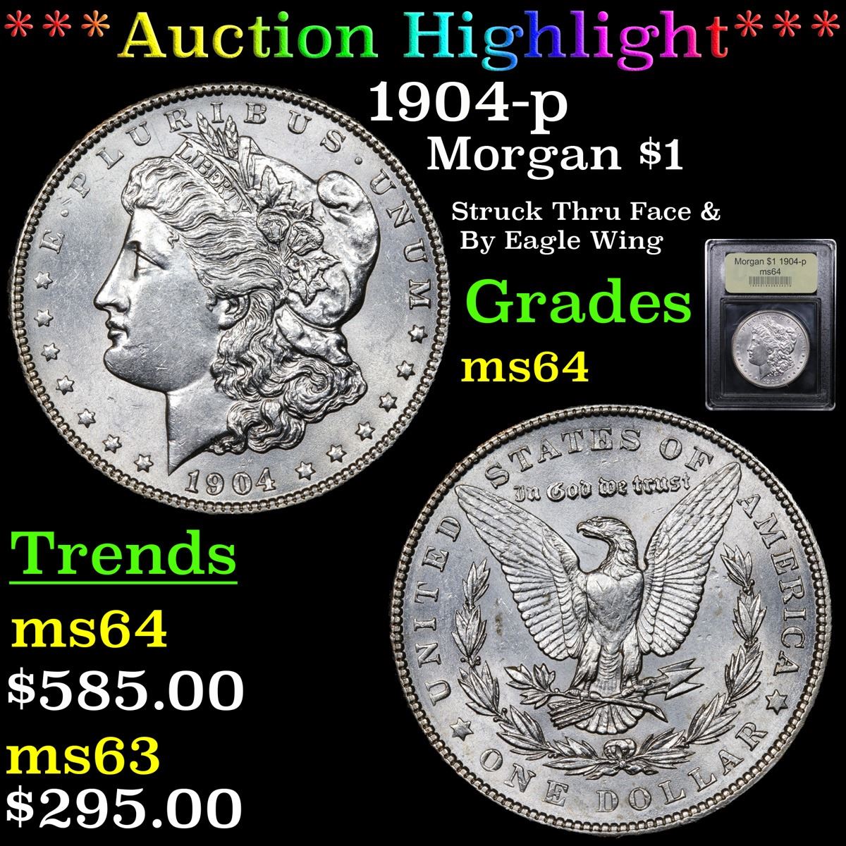 ***Auction Highlight*** 1904-p Struck Thru Face & By Eagle Wing . Morgan Dollar $1 Graded Choice Unc By USCG. A Corey's Pick