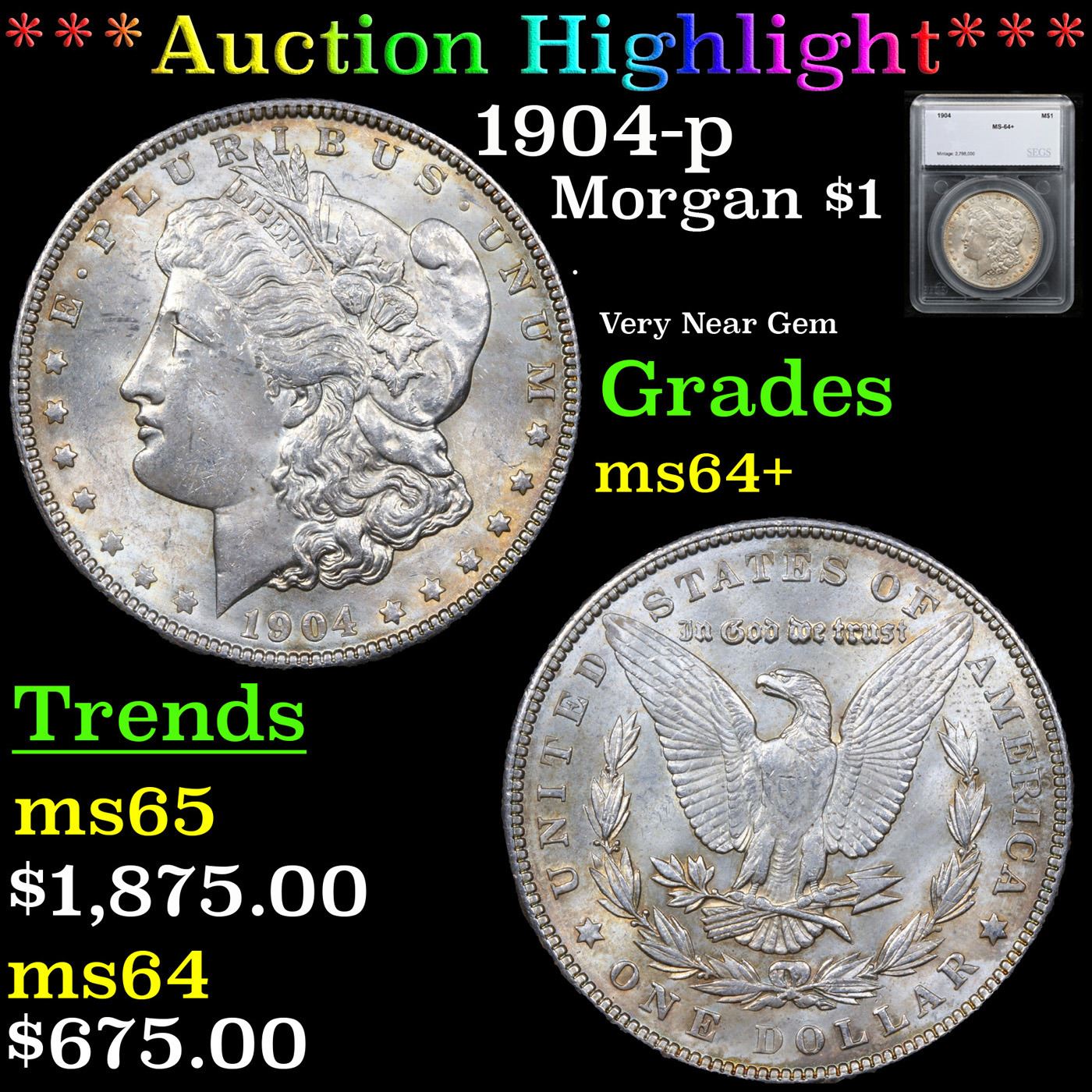 ***Auction Highlight*** 1904-p Morgan Dollar $1 Graded ms64+ By SEGS.