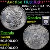 ***Auction Highlight*** 1904-p Vam 5A R5 Morgan Dollar $1 Graded GEM+ Unc BY USCG. This pretty Gem exhibits brilliant silvery tone free surfaces, and both sides are sharply struck with smooth, frosty mint luster. One of the scarcer Philadelphia Mint Morgan dollars in Mint State, the 1904 was not widely represented in any silver dollar releases from government holdings during the middle decades of the 20th century. Q. David Bowers (1993) talks of releases "in the 1941-1942 years, in the 1950s and again in the early 1960s, but, apparently, there was no major release at any specific time." With the typical survivor grading no finer than MS-64 by today's strict standards, the premium quality Gem offered here offers both absolute scarcity and condition rarity that will appeal to the advanced Morgan dollar enthusiast A Corey's Pick, Bid to Win, Don't let it get Away, you might not find its equal Coin. I give this coin my highest recommendation