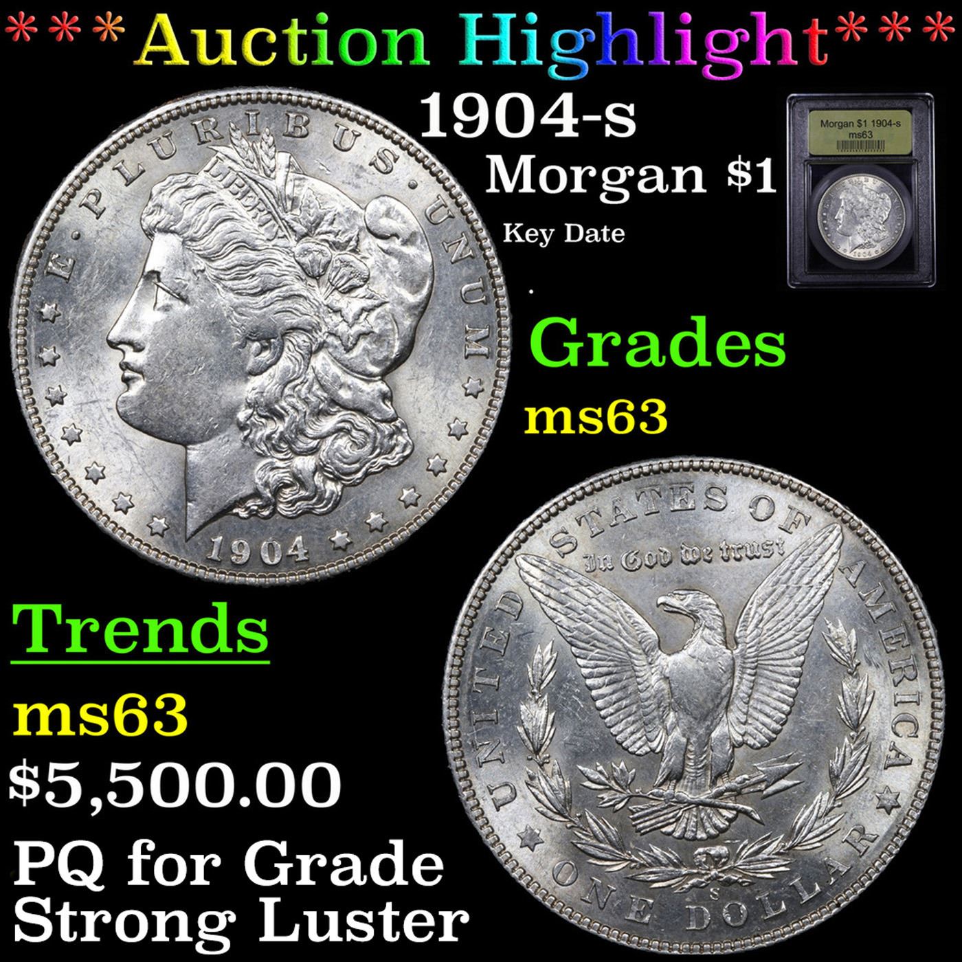 ***Auction Highlight*** 1904-s Morgan Dollar $1 Graded Select Unc By USCG. A Corey's Pick, Bid to Win, Don't let it get Away Coin