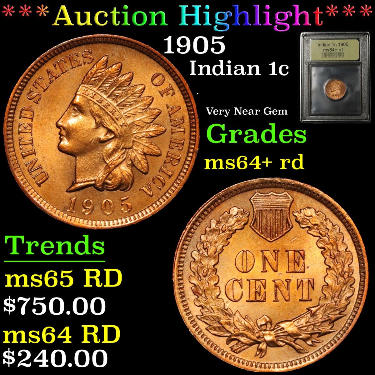 ***Auction Highlight*** 1905 . Very Near Gem Indian Cent 1c Graded Choice+ Unc RD By USCG.