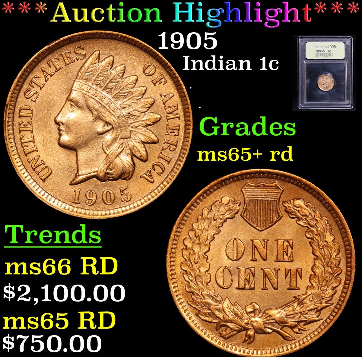 ***Auction Highlight*** 1905 . . Indian Cent 1c Graded Gem+ Unc RD By USCG. A Corey's Pick, Bid to Win, Don't let it get Away Coin