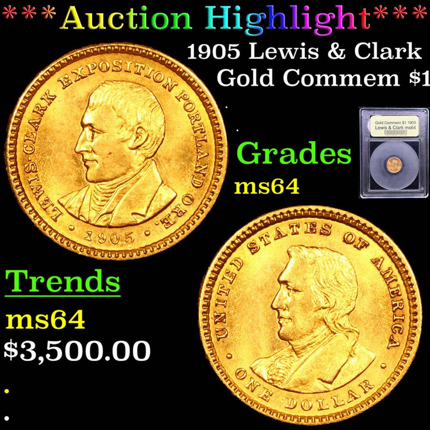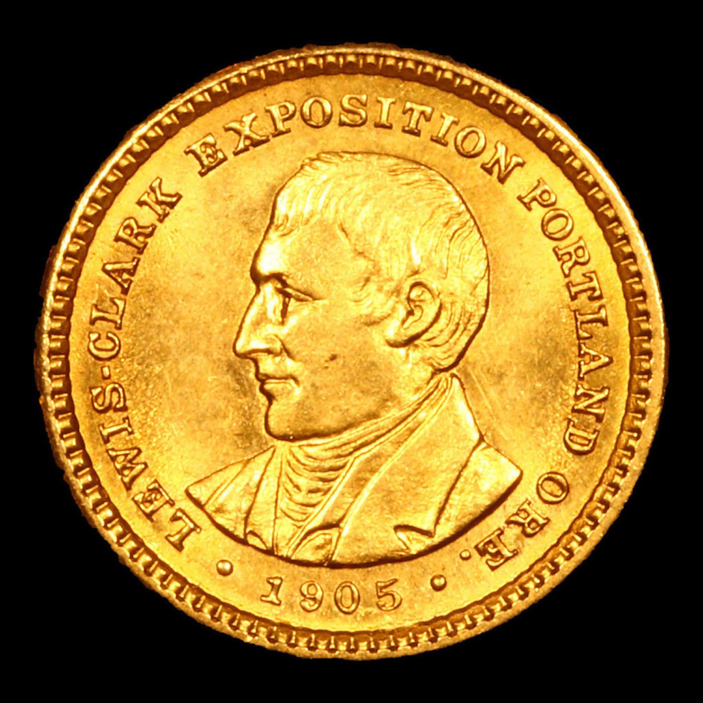 ***Auction Highlight*** 1905 Lewis & Clark Gold Commem Dollar 1 Graded Choice Unc By USCG. Heads You win, Heads You Lose! This is THE ONLY Two Headed Coin in US History! The Obverse depicts the Head of Lewis and the Reverse the Head of Clark. Extremely Scarce Gold Comemorative! Quoting PCGS "This issue is one of the rarest early gold commems". Plus, this is the 1905, which is Harder to Locate than the 1904. PCGS estimates only 5500 Survive. When examining one of these Commemoratives, the Portraits of the Explorers are the First Areas to Show Friction from Handling or Circulation.
