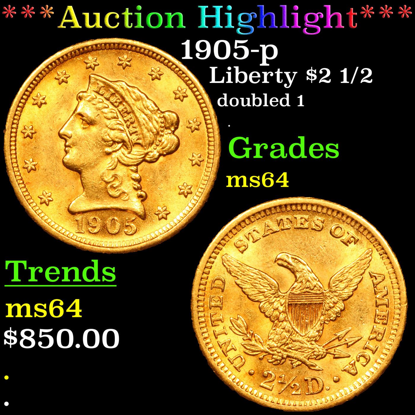 ***Auction Highlight*** 1905-p Gold Liberty Quarter Eagle $2 1/2 Grades Choice Unc.