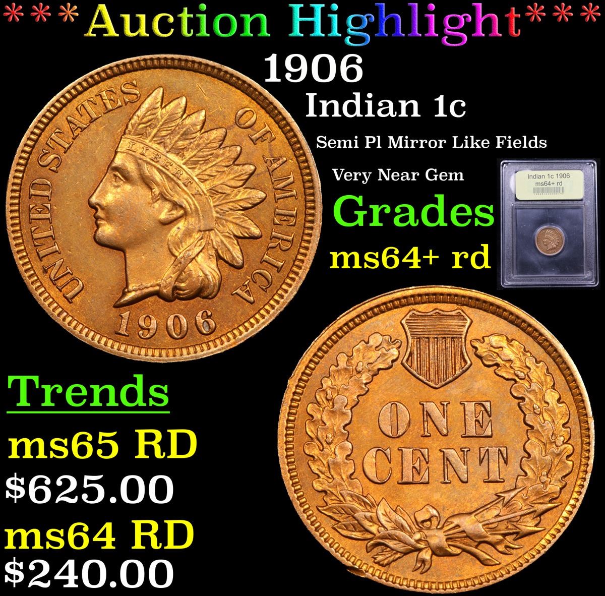***Auction Highlight*** 1906 Indian Cent 1c Graded Choice+ Unc RD By USCG. A Corey's Pick, Bid to Win Coin