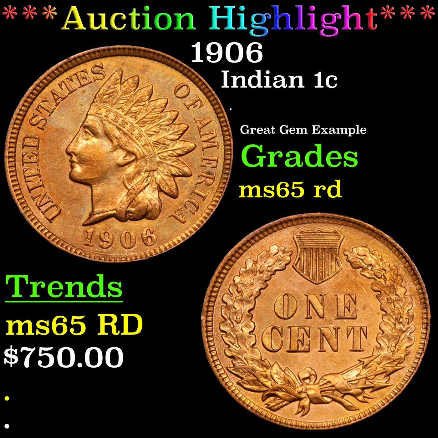 ***Auction Highlight*** 1906 Indian Cent 1c Graded GEM Unc RD By USCG. A Corey's Pick, Bid to Win Coin