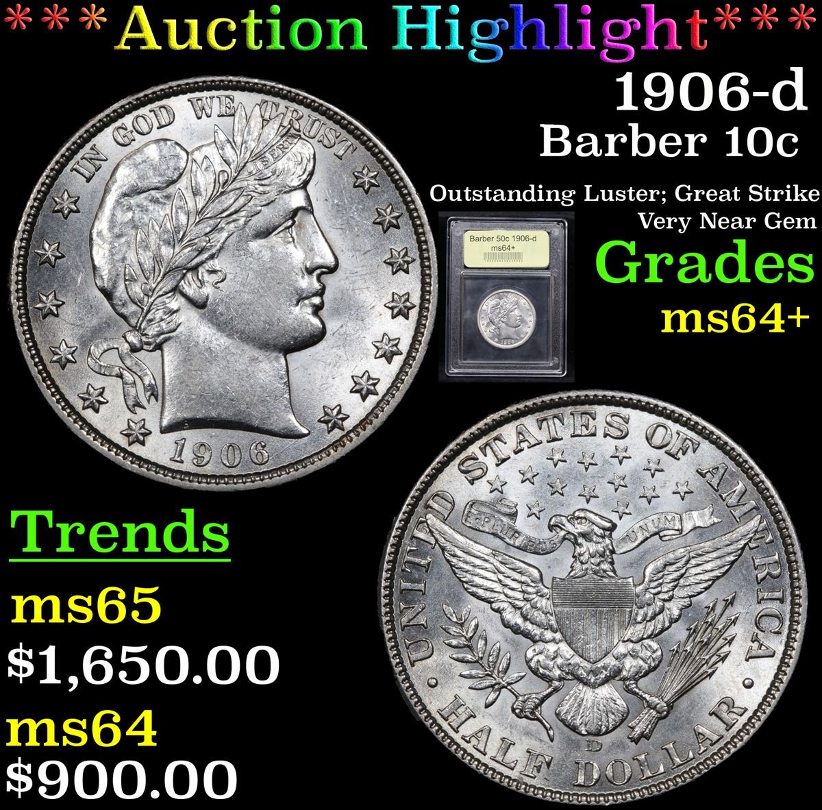 ***Auction Highlight*** 1906-d Outstanding Luster; Great Strike Very Near Gem Barber Half Dollar 50c Graded Choice+ Unc By USCG. A Corey's Pick, Bid to Win, Don't let it get Away, you might not find its equal Coin